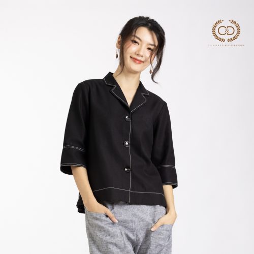 C&D Woman’s shirt Linen Fusion | เสื้อเชิ้ตผู้หญิง แขนสามส่วน สีดำ C9ZUBL