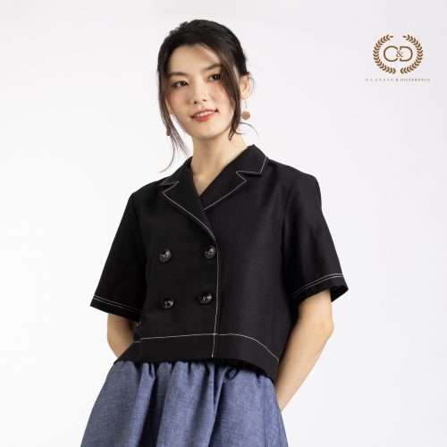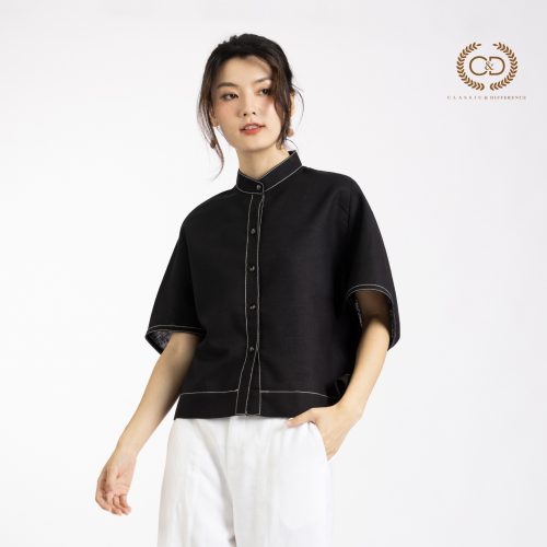 C&D Woman’s Blouse Linen Fusion | เสื้อผู้หญิง คอตั้ง แขนสั้น สีดำ C9ZWBL