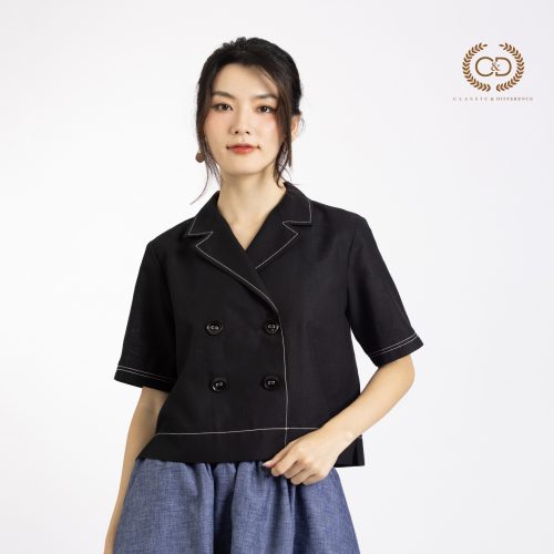 C&D Woman’s Blouse Linen Fusion | เสื้อผู้หญิง แขนสั้น สีดำ C9ZVBL
