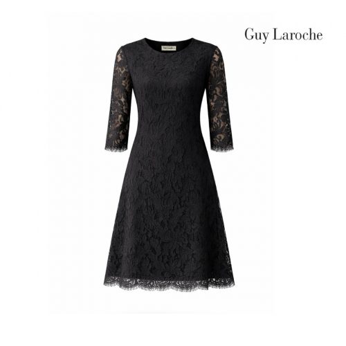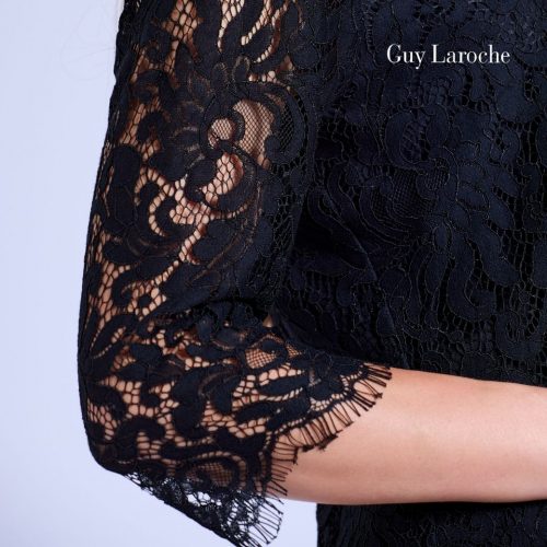 Guy Laroche Dress Luxury lace | เดรสคอกลม แขนสามส่วน สีดำ GCADBL