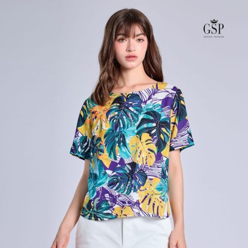 GSP Woman’s Blouse Jazzy art | เสื้อผู้หญิง แขนสั้น สีน้ำเงิน PCDRBU
