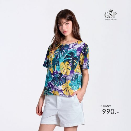 GSP Woman’s Blouse Jazzy art | เสื้อผู้หญิง แขนสั้น สีน้ำเงิน PCDRBU