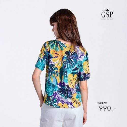 SOLD OUTGSPGSP Woman’s Blouse Tropical monstera | เสื้อผู้หญิง แขนสั้น สีน้ำเงิน PCDSNV