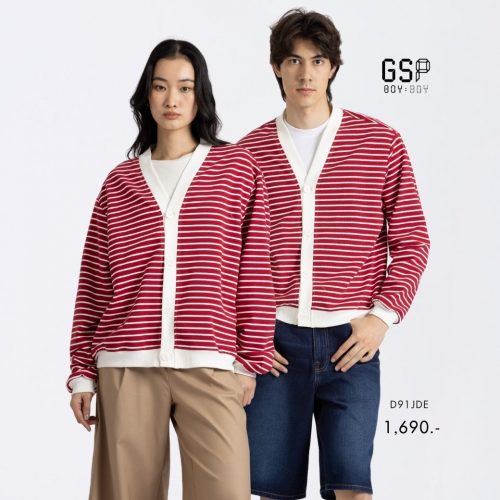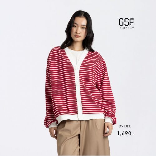 GSP BOY BOY lucky stripe cardigan | เสื้อคลุมแขนยาว สีแดง D91JDE