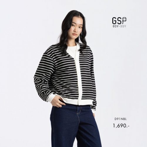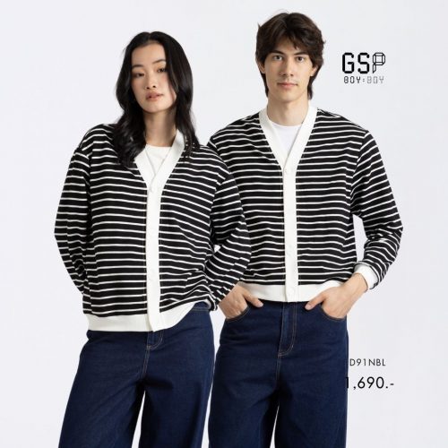 SOLD OUTGSP BOY BOYGSP BOY BOY lucky stripe cardigan Long sleeve White Grey | เสื้อคลุม ลัคกี้ สไตร์พ คาดิแกน แขนยาว สีเทา D91MGY