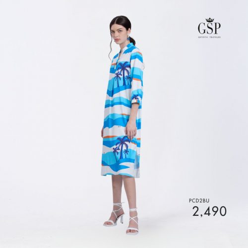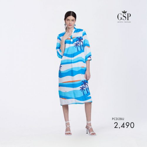 GSP Wave Dress longsleeve Blue | เดรสยาว เวฟ แขนยาว สีน้ำเงิน PCD2BU