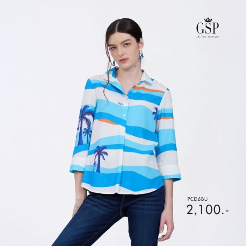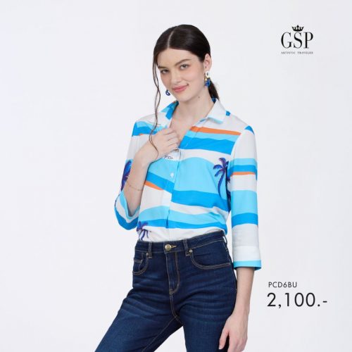 GSP Wave Woman’s shirt longsleeve Blue | เสื้อเชิ้ตผู้หญิง เวฟ แขนสามส่วน สีน้ำเงิน PCD6BU