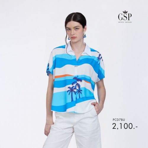 GSP Wave Woman’s blouse short sleeve Blue | เสื้อเชิ้ตผู้หญิง เวฟ แขนสั้น สีน้ำเงิน PCD7BU
