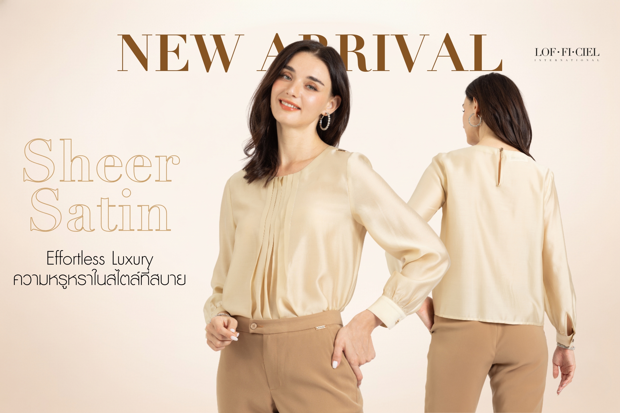 LOF-FI-CIEL Woman’s Blouse Sheer Satin Long sleeve Beige | เสื้อผู้หญิง เชียร์ ซาติน แขนยาว สีเบจ F9Y6CR