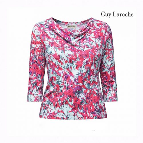 เสื้อผู้หญิง Guy Laroche Blouse เสื้อเบลาส์ผ้าจอร์เจียแขนสามส่วน ลายพิมพ์ Pinky Flamingo GZ2KPI