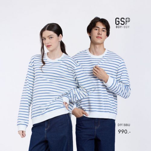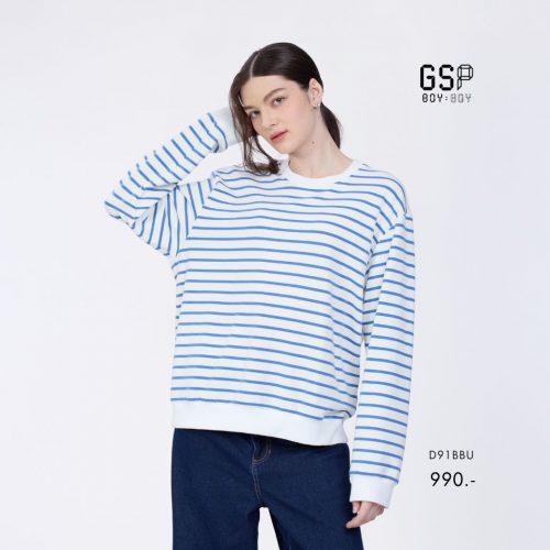 GSP BOY BOY unisex Sweatshirt Lucky stripe Sweatshirt | เสื้อยืด แขนยาว สีขาวริ้วฟ้า D91BBU