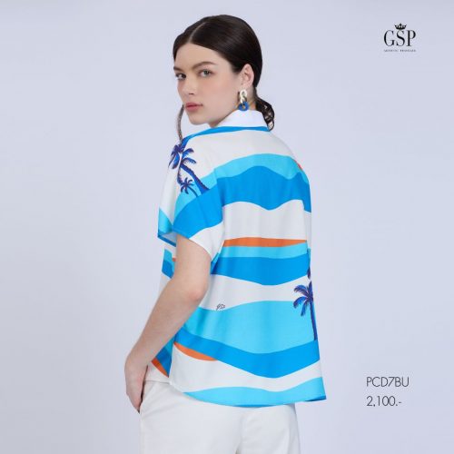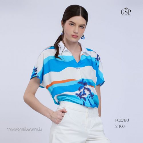 GSP Wave Woman’s blouse short sleeve Blue | เสื้อเชิ้ตผู้หญิง เวฟ แขนสั้น สีน้ำเงิน PCD7BU