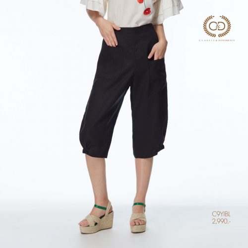 C&D Linen Premium Big jinny pants | กางเกงผู้หญิง ขาห้าส่วน สีดำ C9YIBL