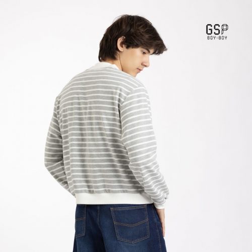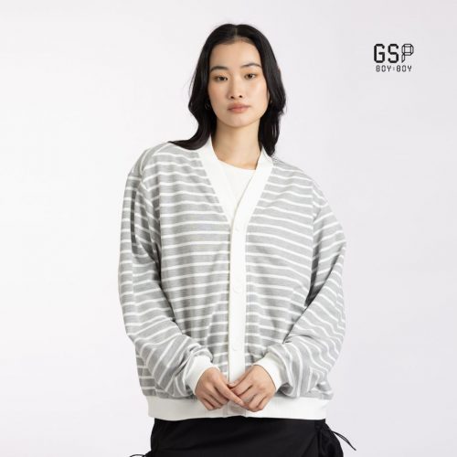 SOLD OUTGSP BOY BOYGSP BOY BOY lucky stripe cardigan Long sleeve White Grey | เสื้อคลุม ลัคกี้ สไตร์พ คาดิแกน แขนยาว สีเทา D91MGY