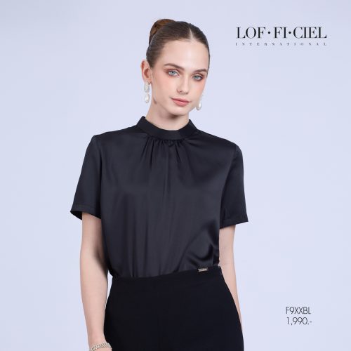 LOF-FI-CIEL Woman’s blouse Silk Satin | เสื้อผู้หญิงคอตั้ง แขนสั้น สีดำ F9XXBL