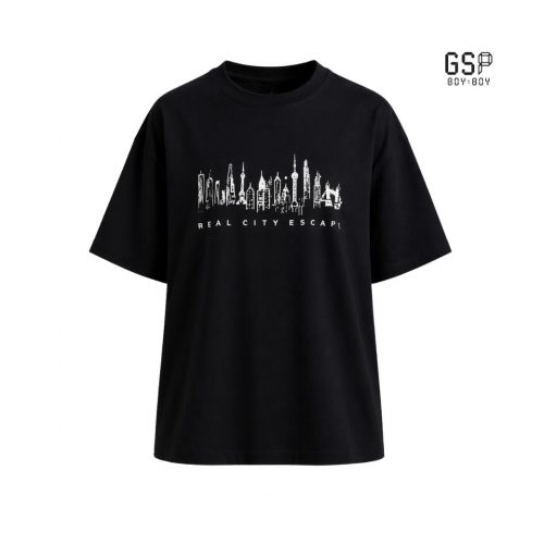GSP BOY BOY Unisex oversized crop tee city escape Black t-shirt | เสื้อยืดสีดำ DC3EBL
