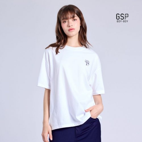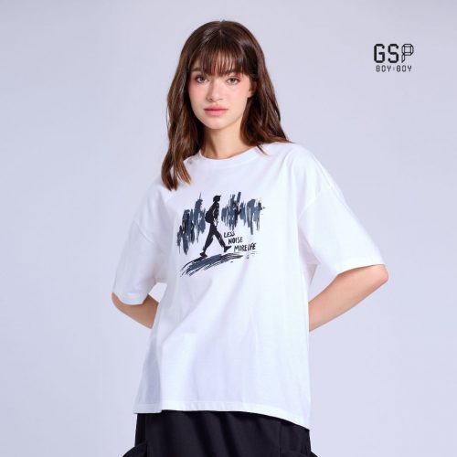 GSP BOY BOY Unisex oversized crop tee city walk t-shirt | เสื้อยืดสีขาว DC3HWH