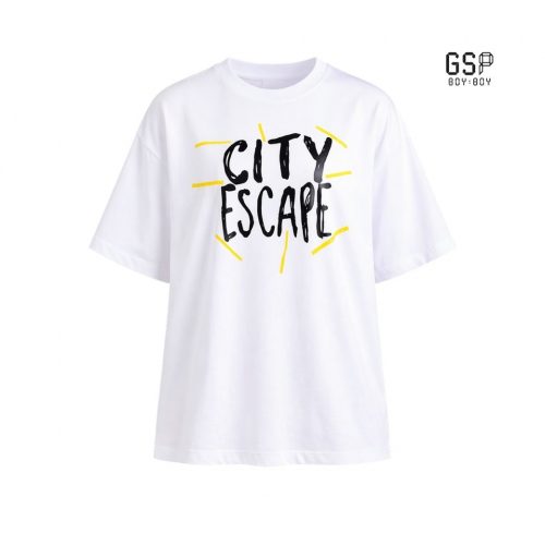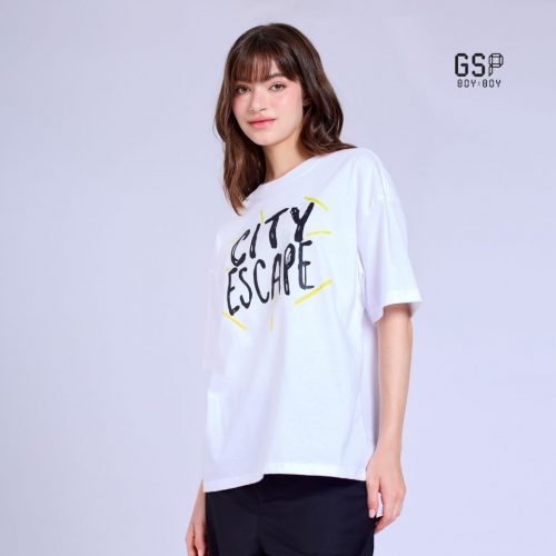 GSP BOY BOY Unisex oversized crop tee city escape White t-shirt | เสื้อยืดสีขาว DC3GWH