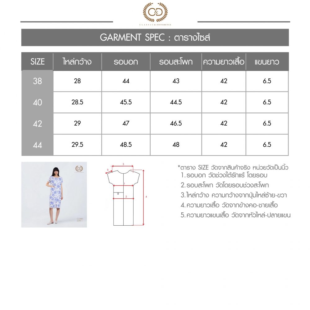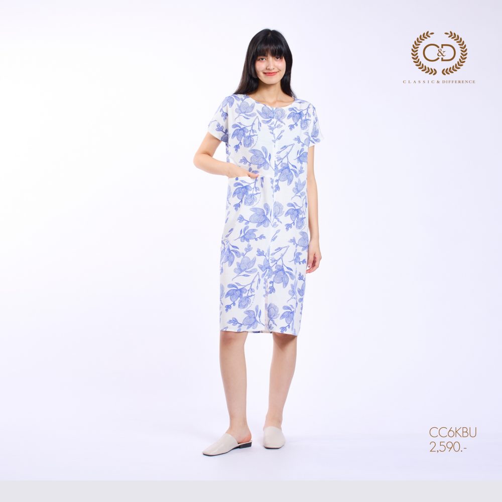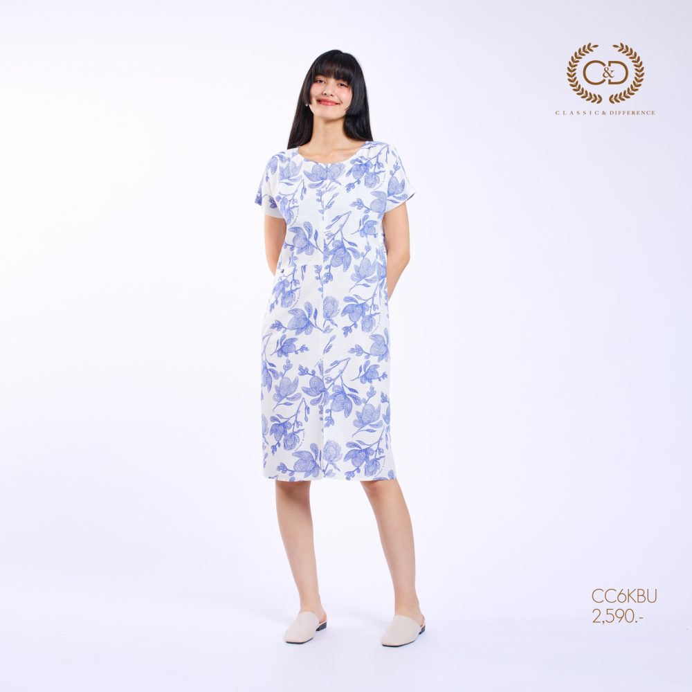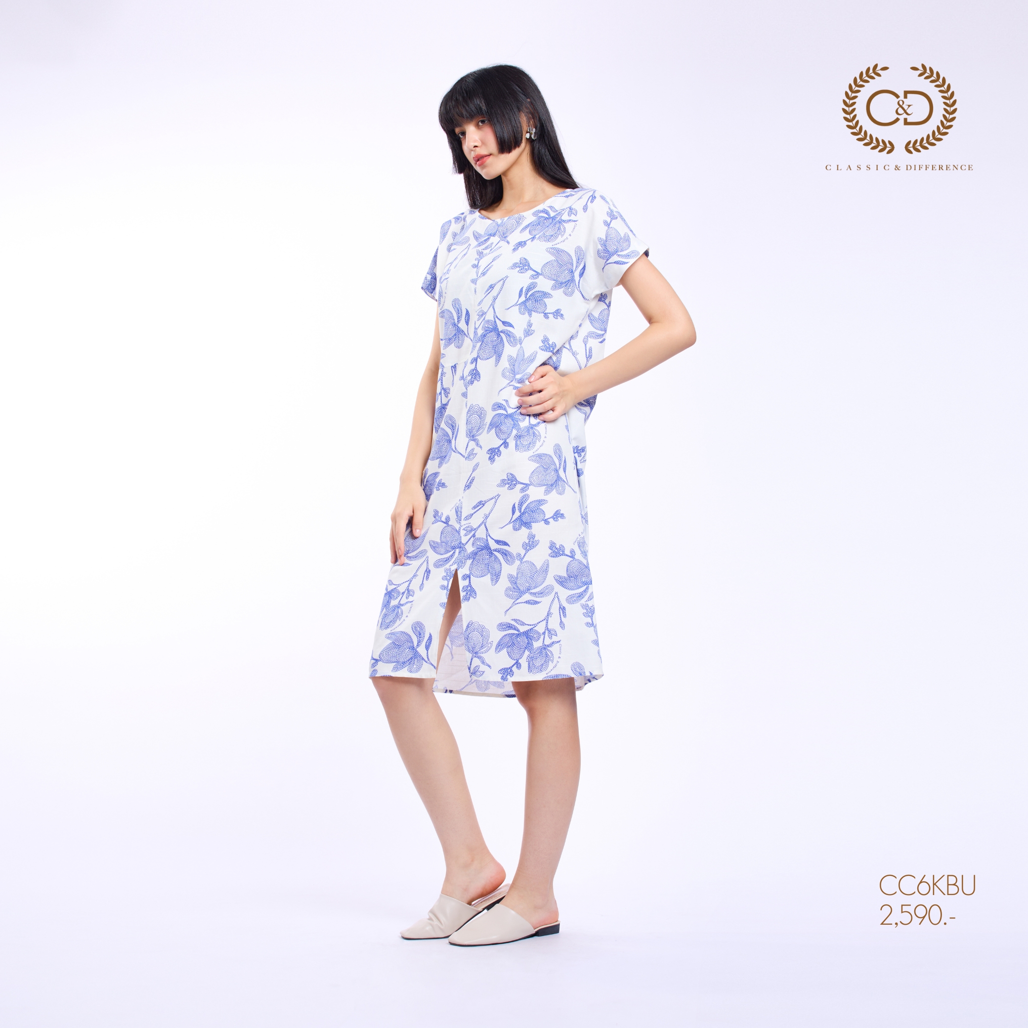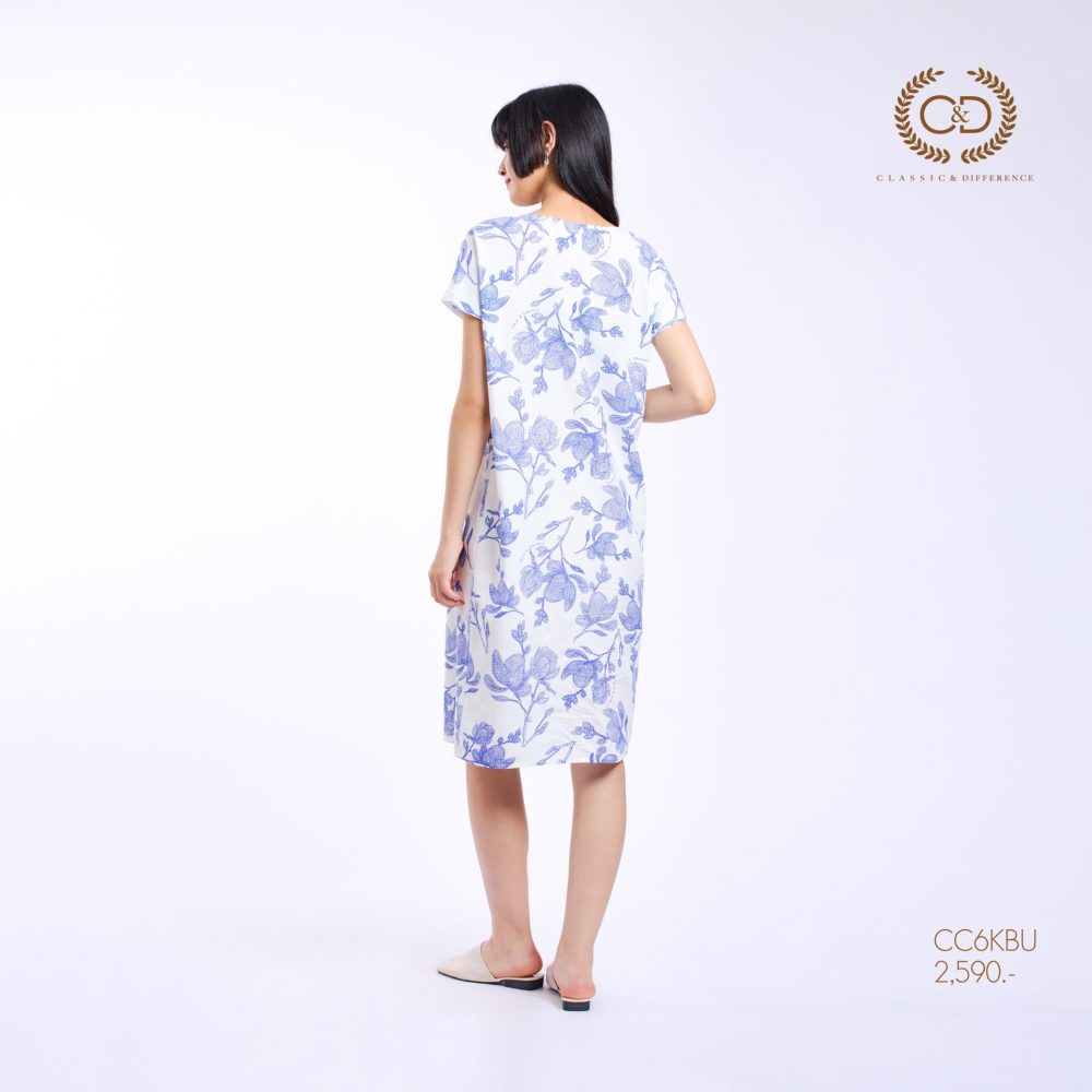 C&D Dress Blue Flower stitch | เดรส คอกลม แขนสั้น สีน้ำเงิน CC6KBU