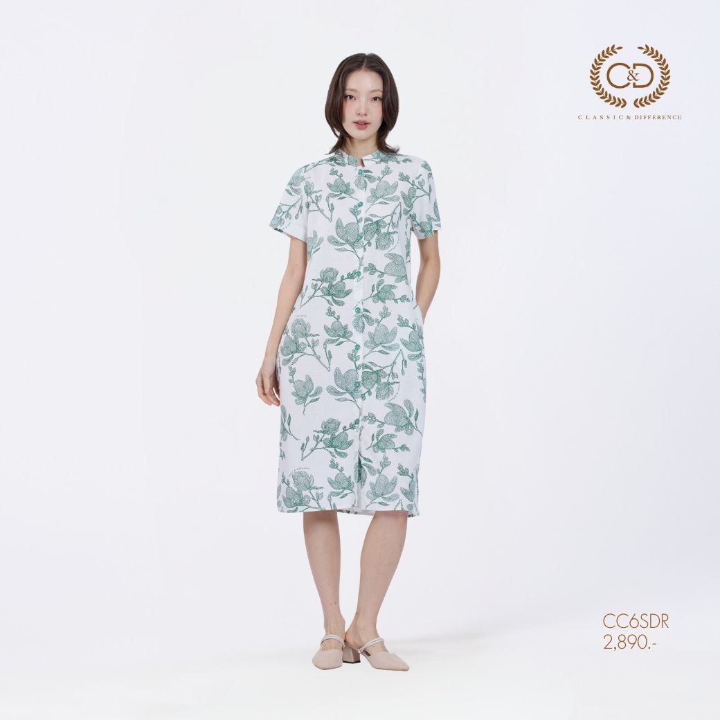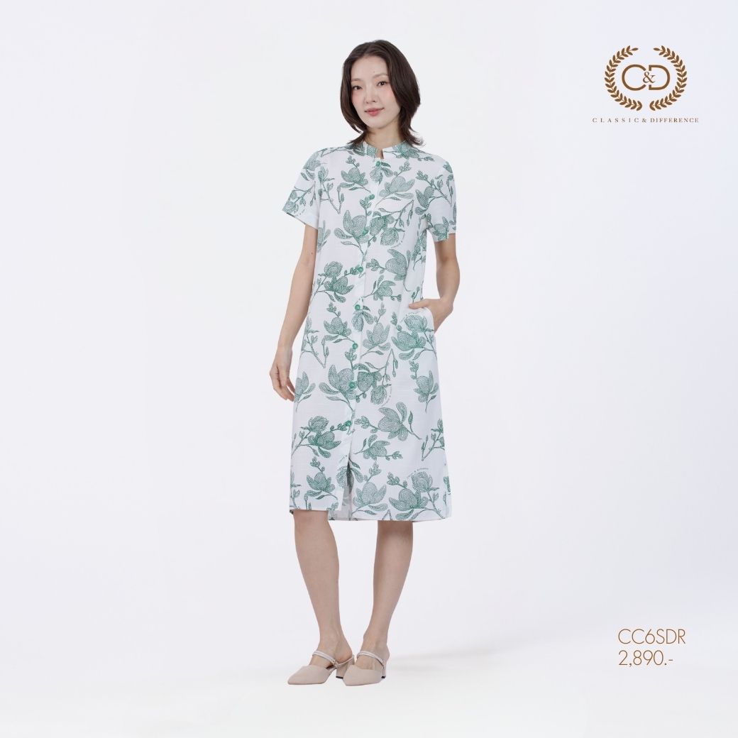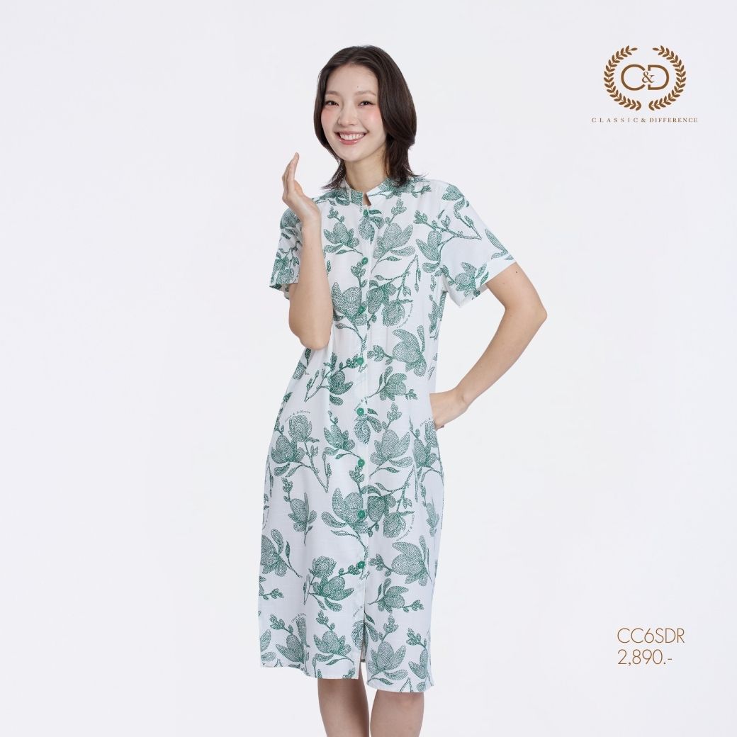 เดรส C&D Green Flower Stitch ทรงคอตั้งแขนสั้น ออกแบบด้วยลายพิมพ์ Green Flower Stitch โทนสีเขียวเข้ม มอบลุคสดชื่นแต่ยังคงความสุภาพ เนื้อผ้าคอตตอนผสมเรยอนสวมใส่สบาย ระบายอากาศดี เหมาะสำหรับสไตล์ Everyday Look ไปจนถึง Holiday หรือชุดเที่ยวที่ต้องการความคล่อง