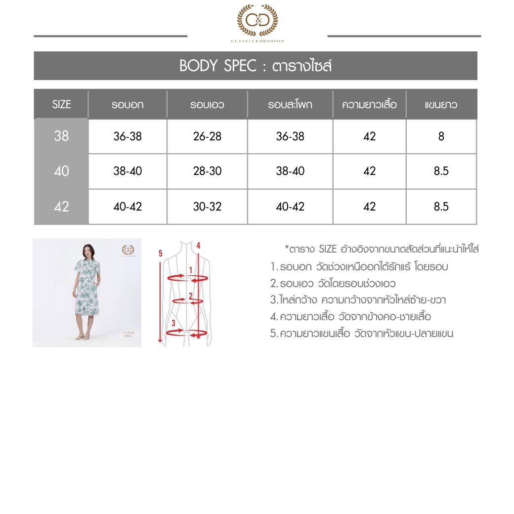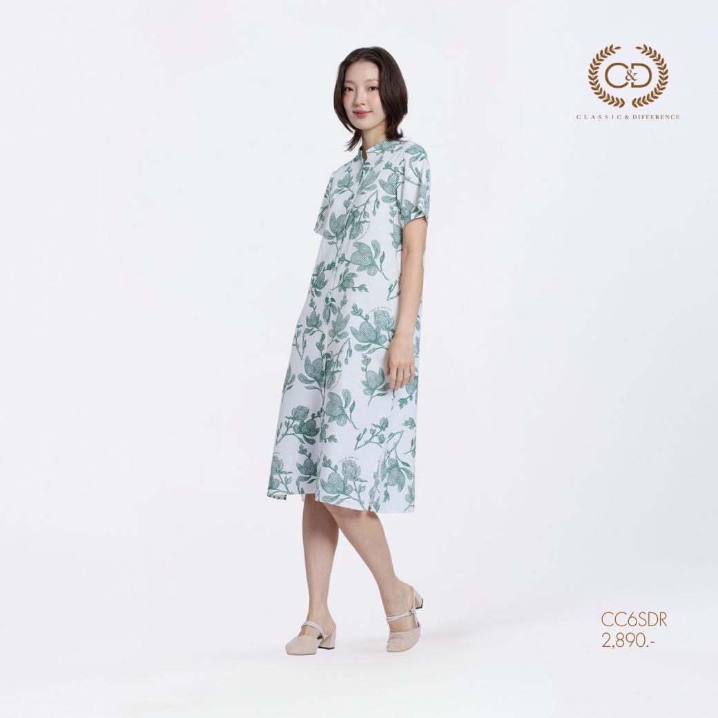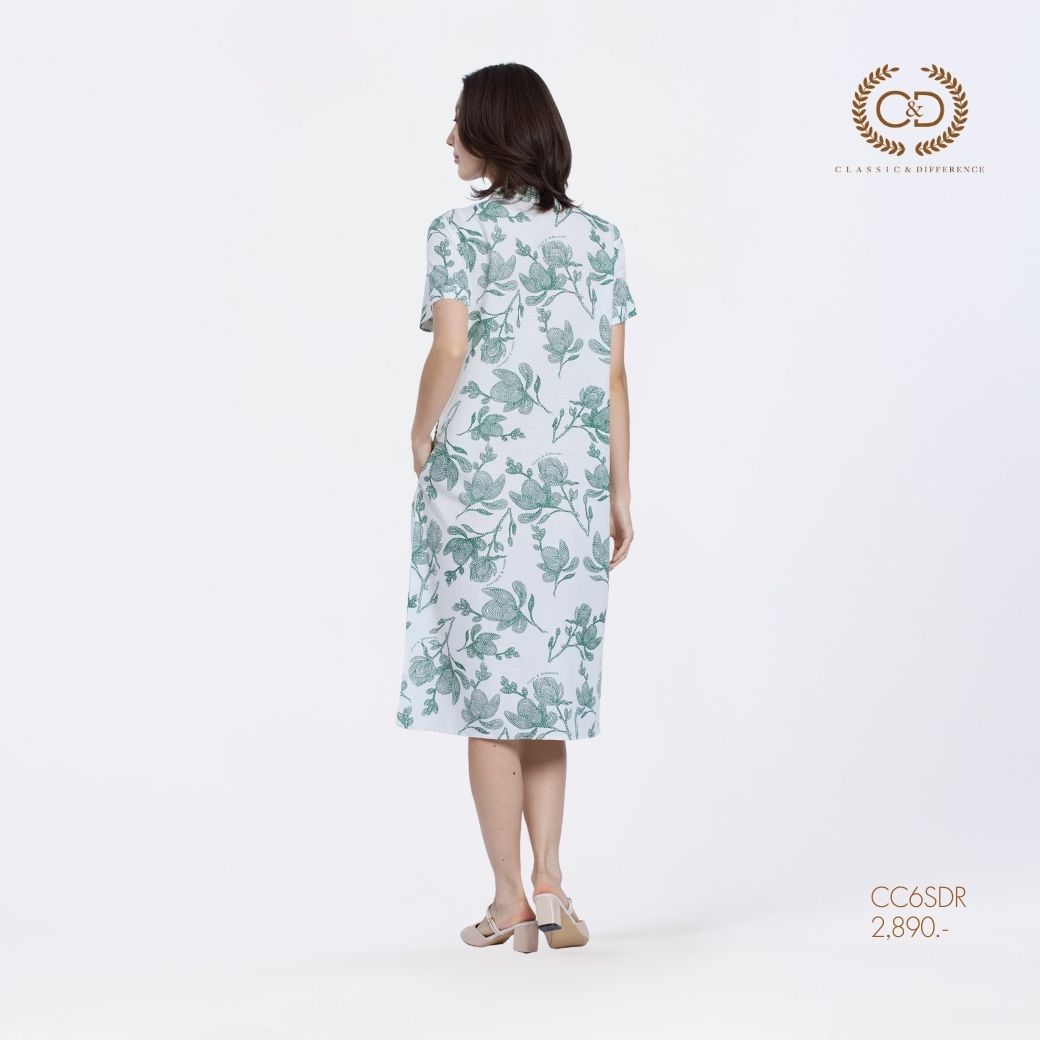 เดรส C&D Green Flower Stitch ทรงคอตั้งแขนสั้น ออกแบบด้วยลายพิมพ์ Green Flower Stitch โทนสีเขียวเข้ม มอบลุคสดชื่นแต่ยังคงความสุภาพ เนื้อผ้าคอตตอนผสมเรยอนสวมใส่สบาย ระบายอากาศดี เหมาะสำหรับสไตล์ Everyday Look ไปจนถึง Holiday หรือชุดเที่ยวที่ต้องการความคล่อง