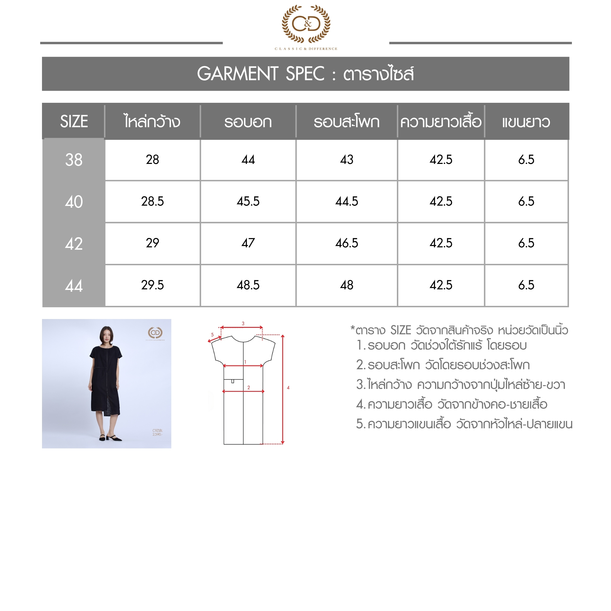 เดินเส้นด้ายสีขาว ปักโลโก้ C&D