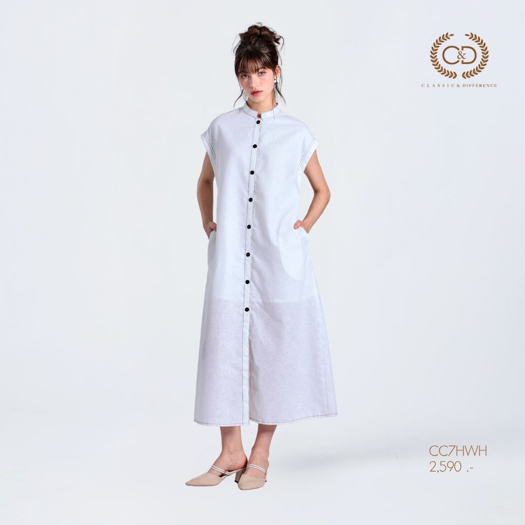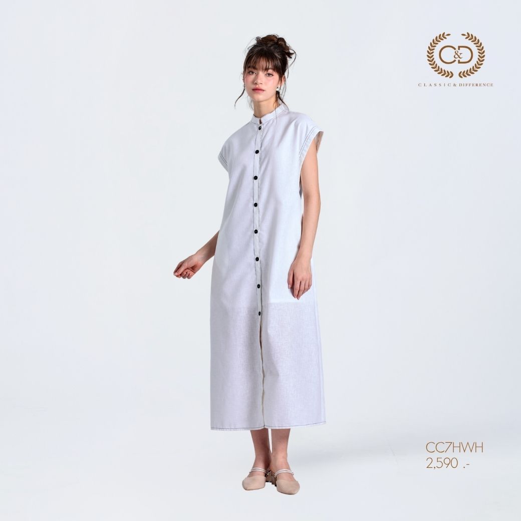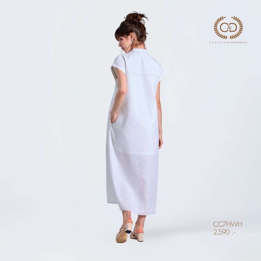 C&D Dress Linen Fusion White | เดรสยาว เดรส สีขาว CC7HWH