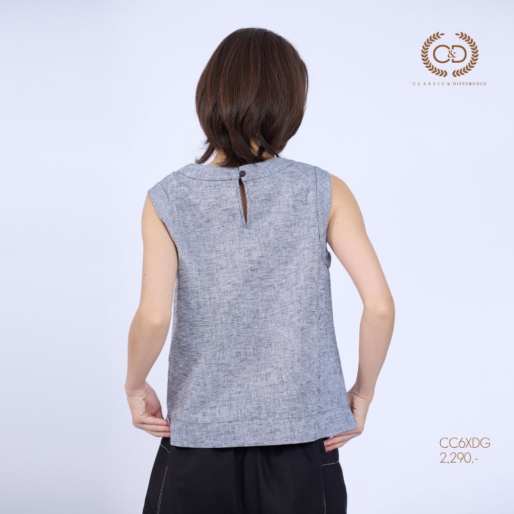C&D Linen Fusion Woman’s blouse Short sleeve Grey | เสื้อผู้หญิง ลินิน ฟิวชั่น คอตั้ง แขนกุด สีเทา CC6XDG