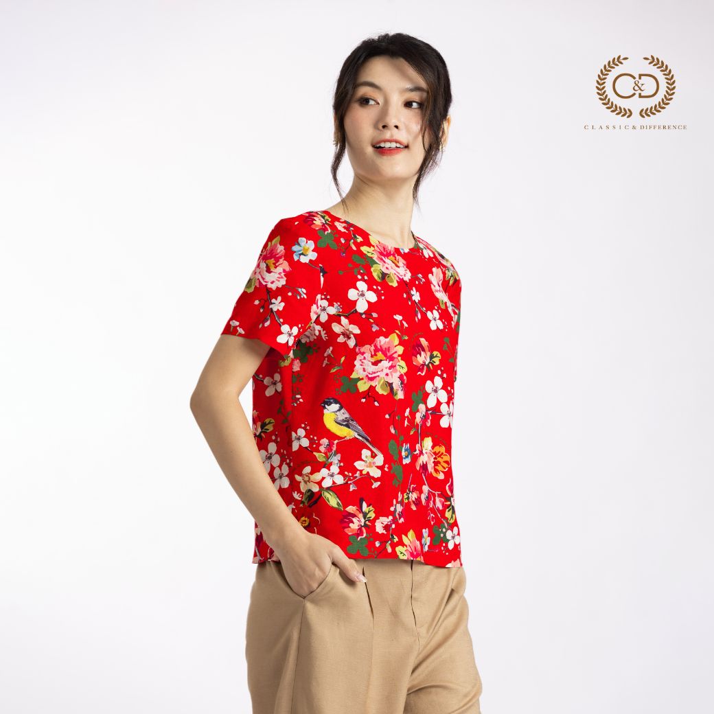 C&D woman’s blouse Tiny bird | เสื้อผู้หญิง คอกลม สีแดง CBAZRE
