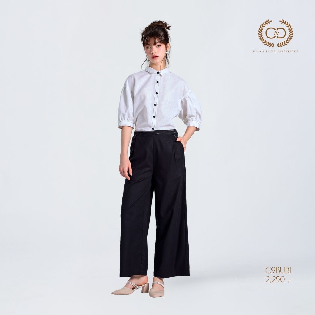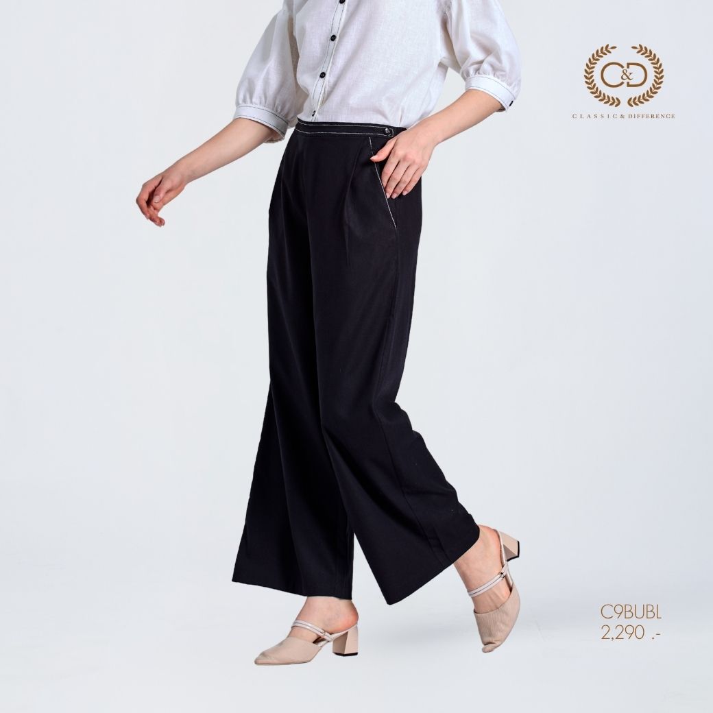 C&D Woman’s pants Cotton Fusion Palazzo pants | กางเกงขายาว ขาตรง สีดำ C9BUBL
