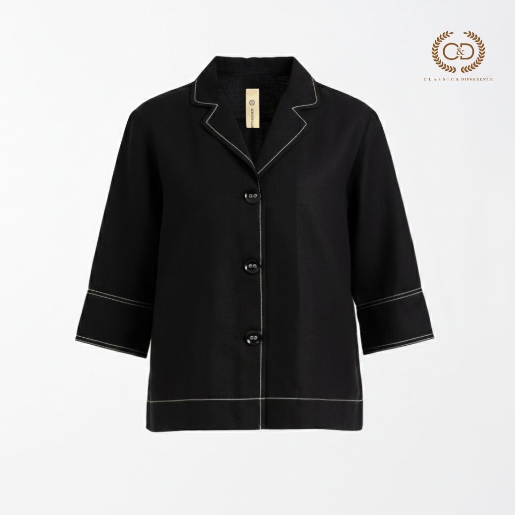 C&D Woman’s shirt Linen Fusion | เสื้อเชิ้ตผู้หญิง แขนสามส่วน สีดำ C9ZUBL