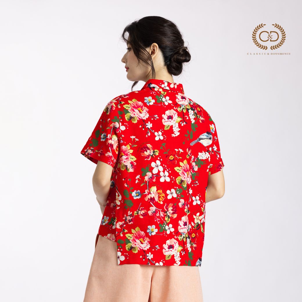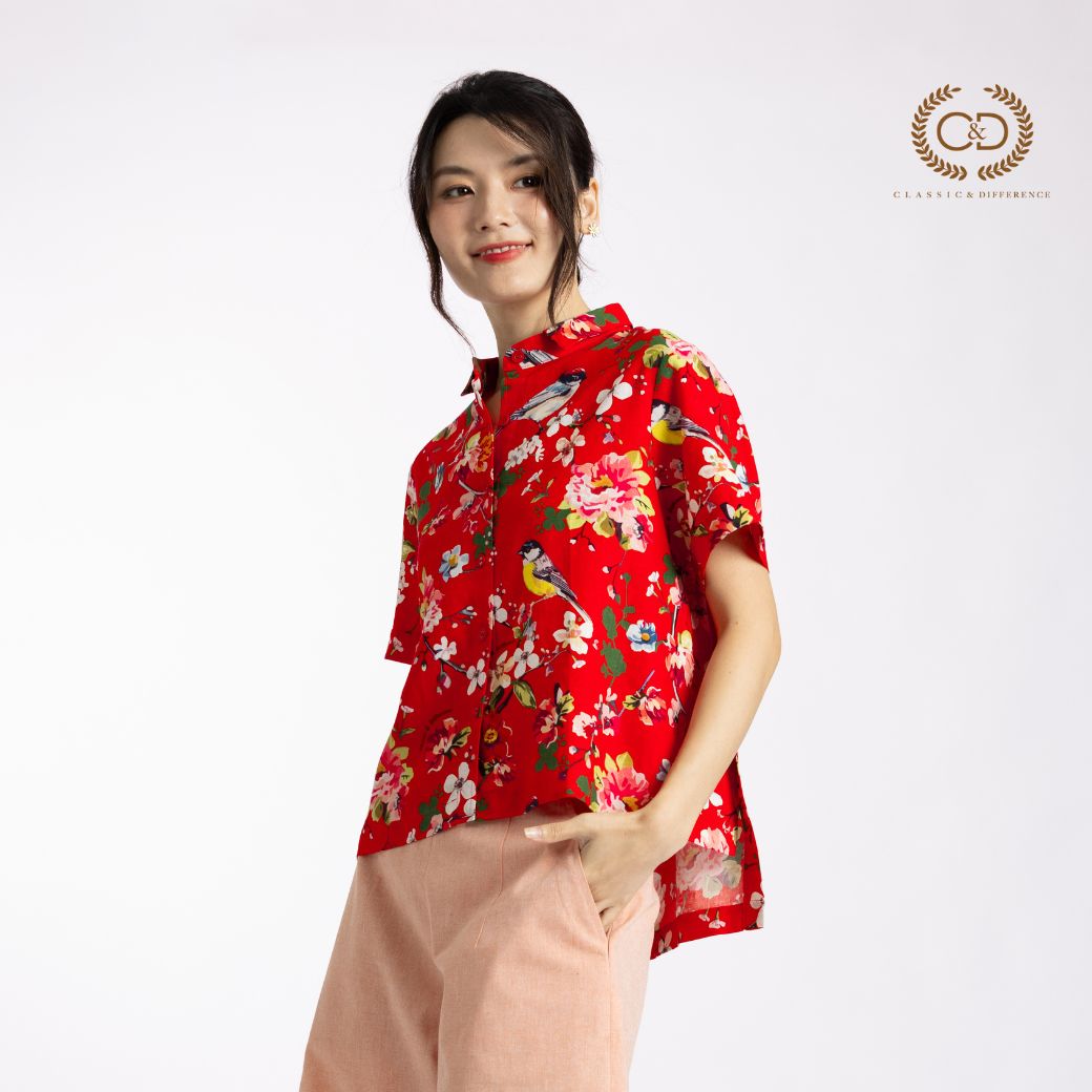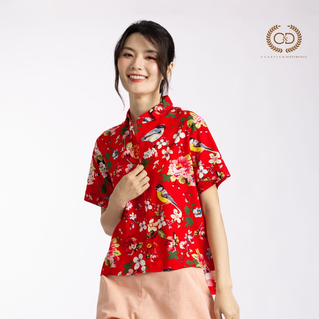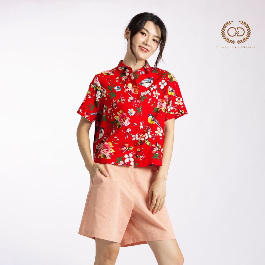 C&D woman’s shirt Tiny bird | เสื้อเชิ้ตผู้หญิง คอปกแขนสั้น สีแดง CBB1RE