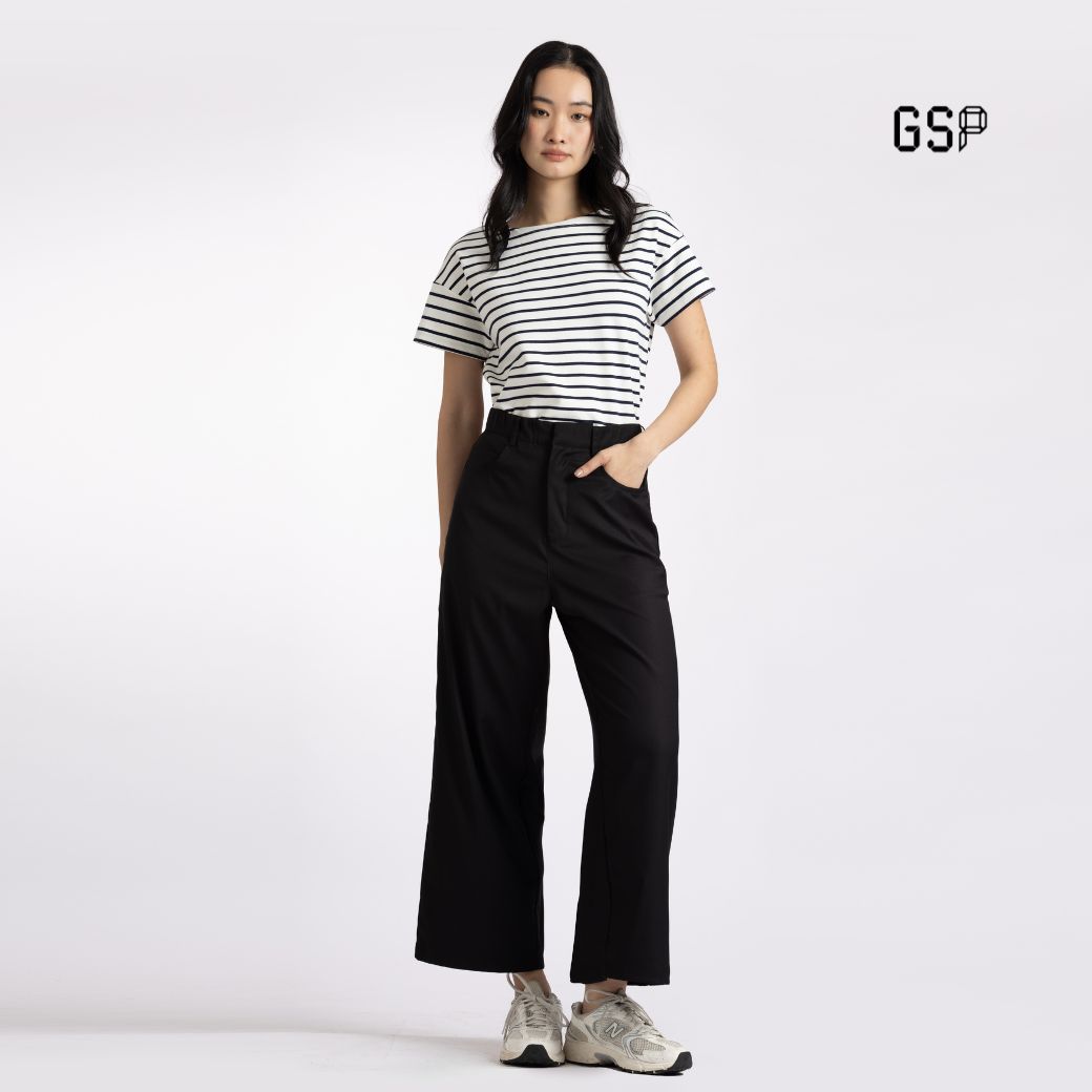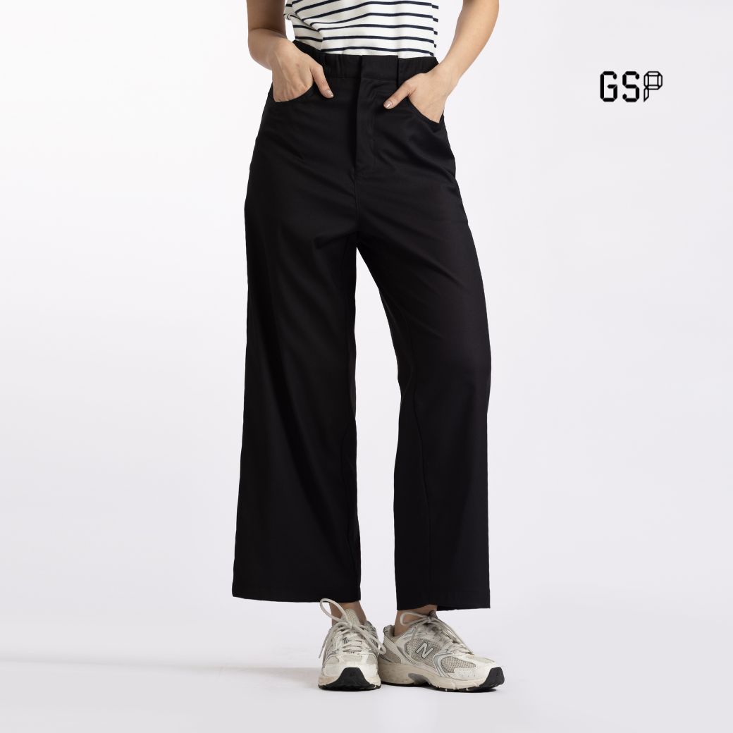 กางเกงขายาว GSP 2 Way Stretch ทรงกระบอกกว้าง สีดำ ผลิตจากผ้าโพลีเอสเตอร์คุณภาพสูง ให้ความยืดหยุ่น สวมใส่สบาย ขอบเอวยางยืดรอบเอวช่วยกระชับโดยไม่อึดอัด ดีไซน์เรียบสุภาพ เหมาะสำหรับ Everyday Look, Holiday Style และ Sport Look ตอบโจทย์ทุกกิจกรรมของผู้สวมใส่