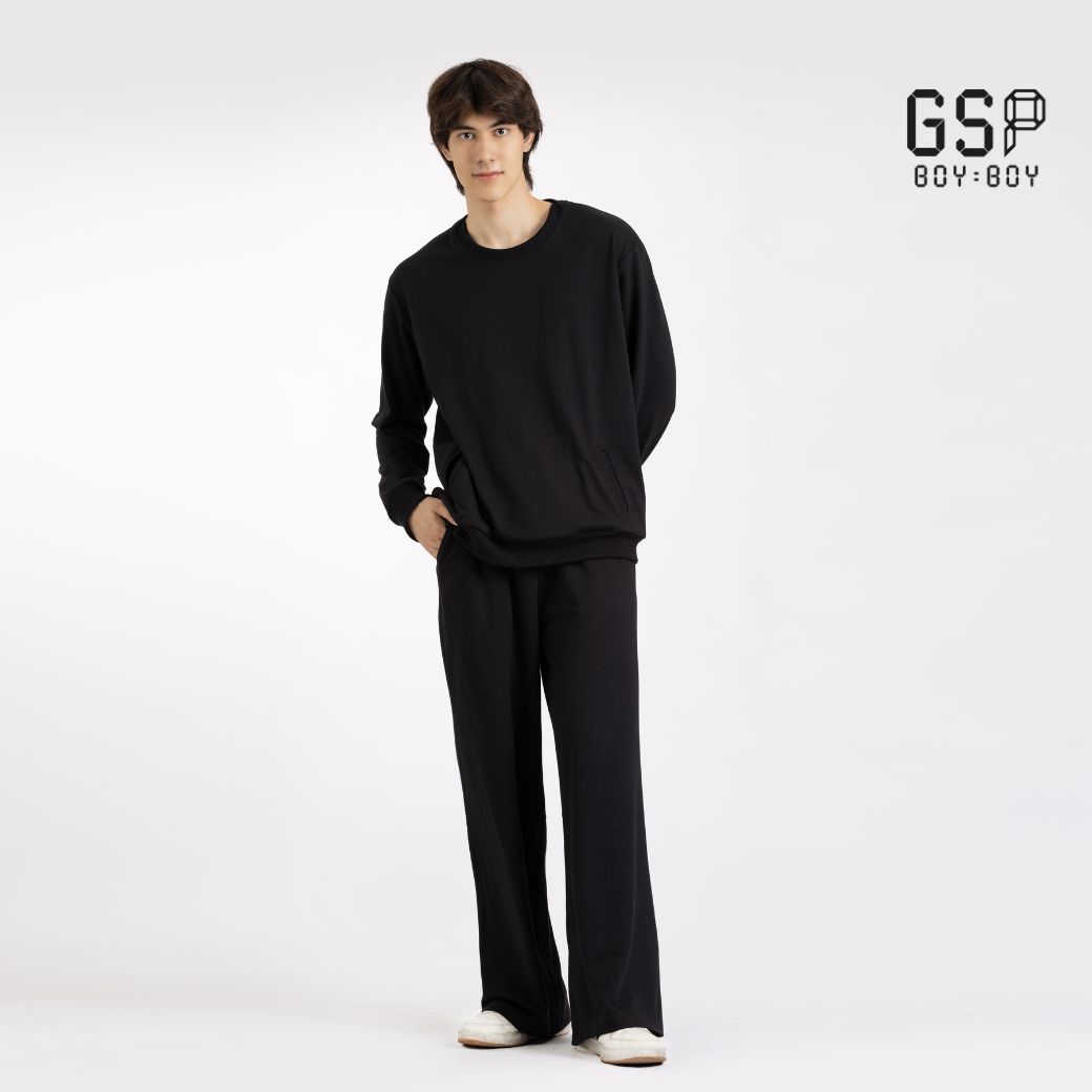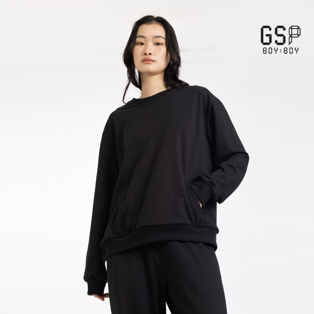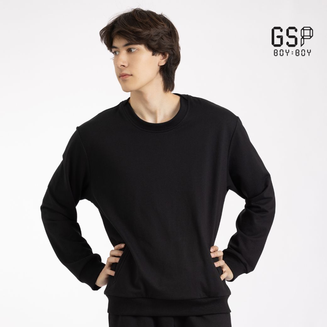 GSP BOY BOY unisex Sweatshirt Baby French terry Grey-Sweatshirt Long sleeve Black | เสื้อยืด เบบี้ เฟรนช์ เทอร์รี สเวตเชิ้ต แขนยาว สีดำ D91HBL
