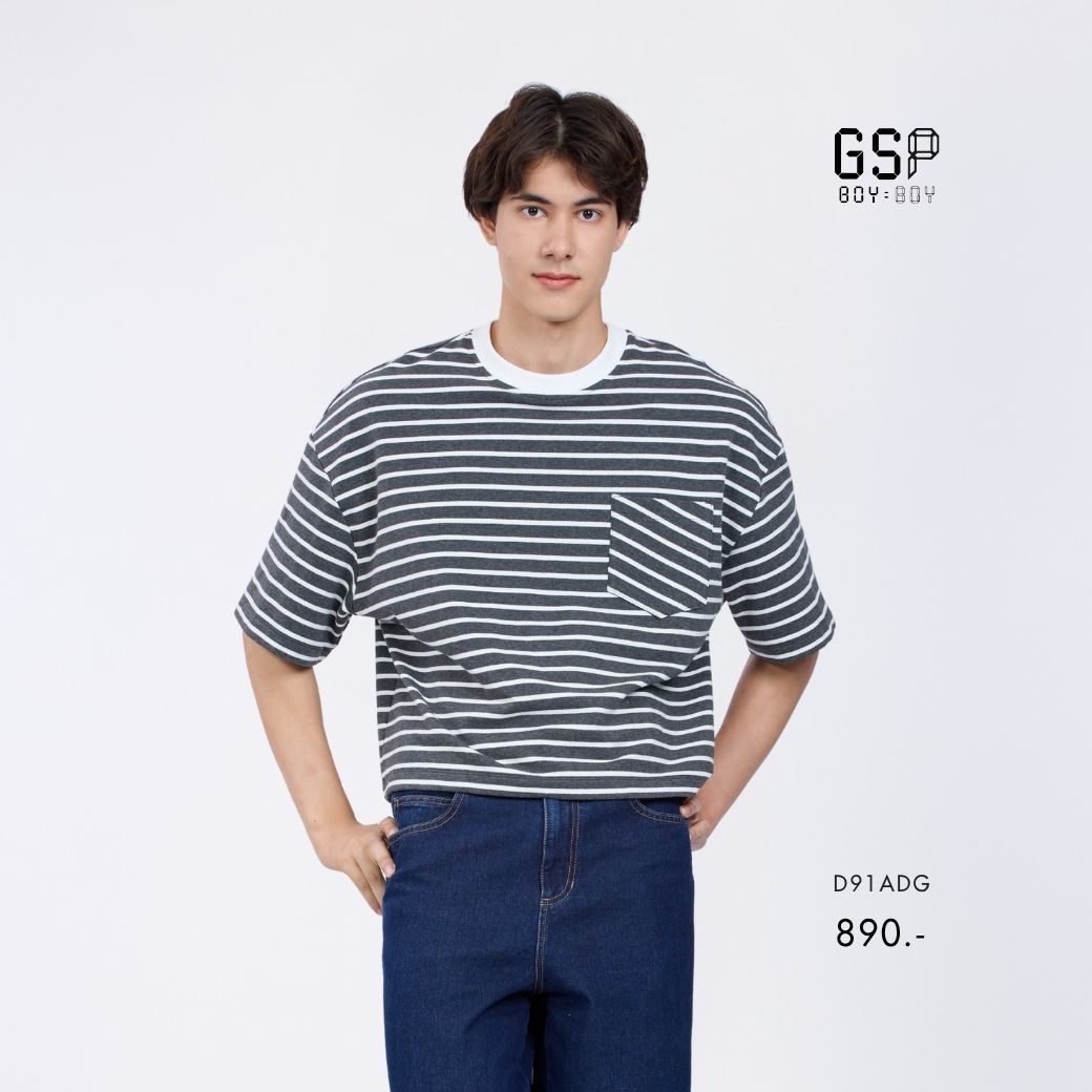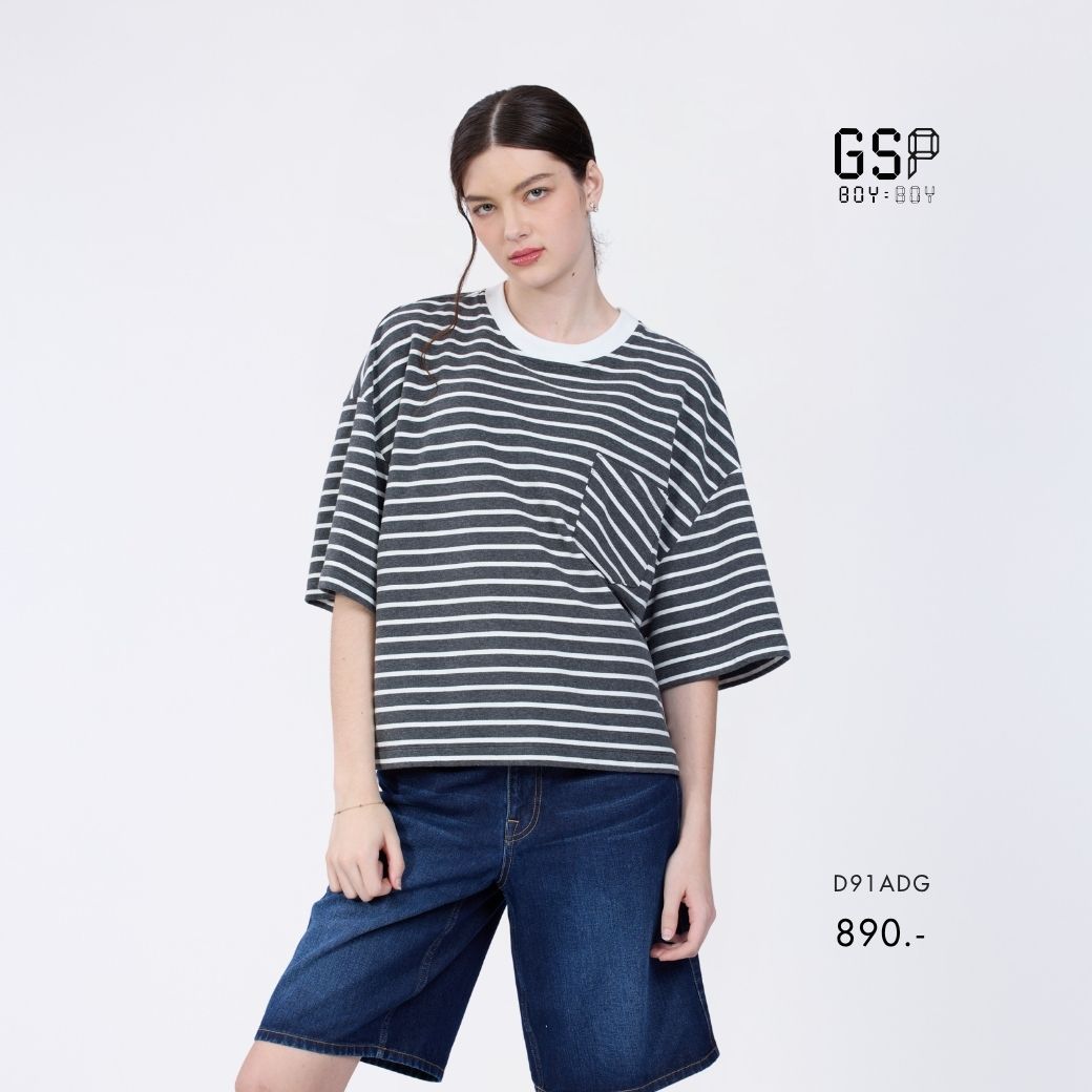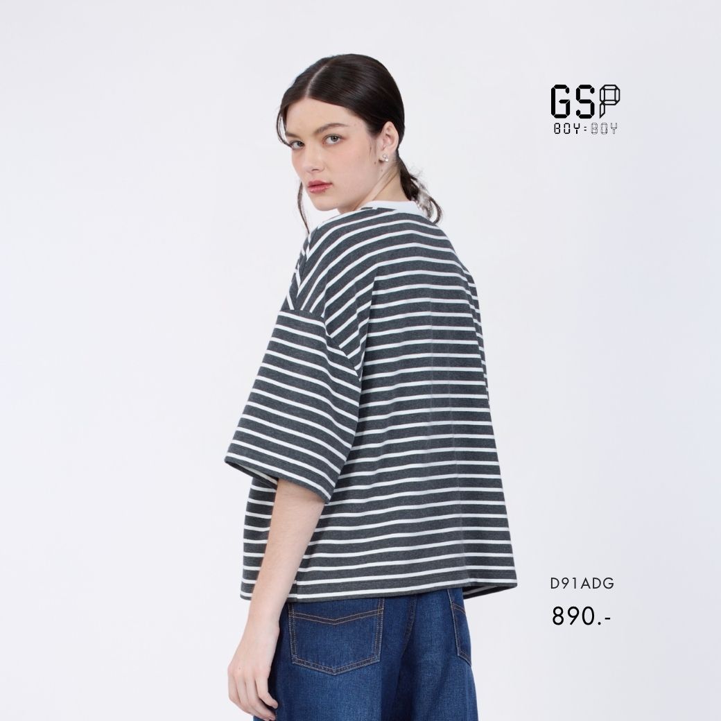 GSP BOY BOY Unisex Tee shirt Boxy Lucky Stripe | เสื้อยืด แขนสั้น สีเทาริ้วขาว D91ADG