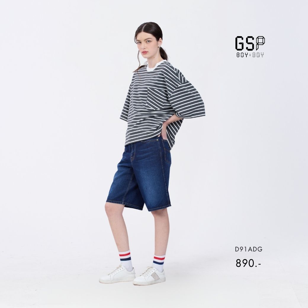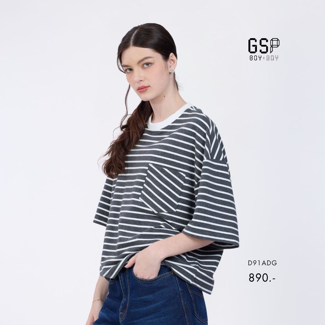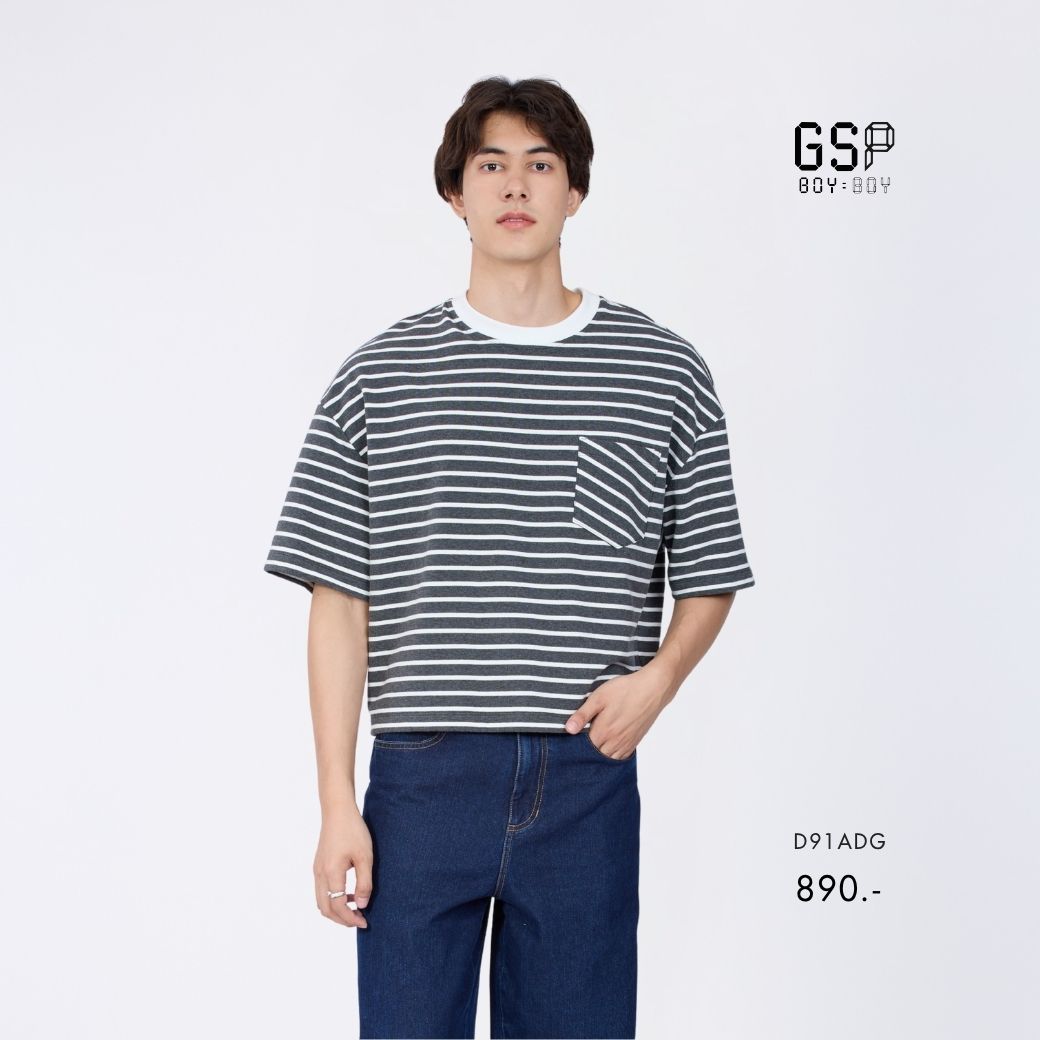 GSP BOY BOY Unisex Tee shirt Boxy Lucky Stripe | เสื้อยืด แขนสั้น สีเทาริ้วขาว D91ADG