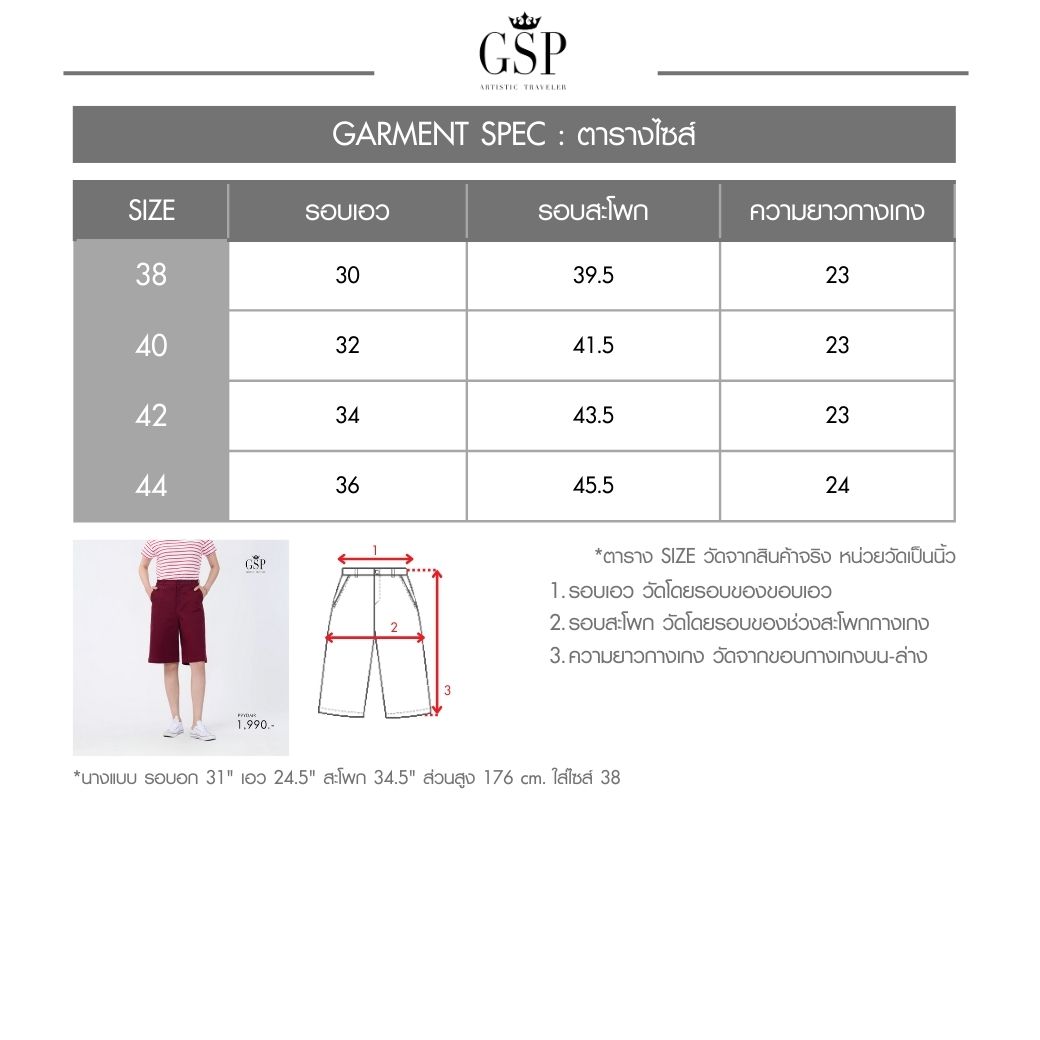 GSP Chino short Woman’s Pants Short Pants Maroon | กางเกงผู้หญิง กางเกงขาสั้น สีแดงน้ำตาล P9YDMR