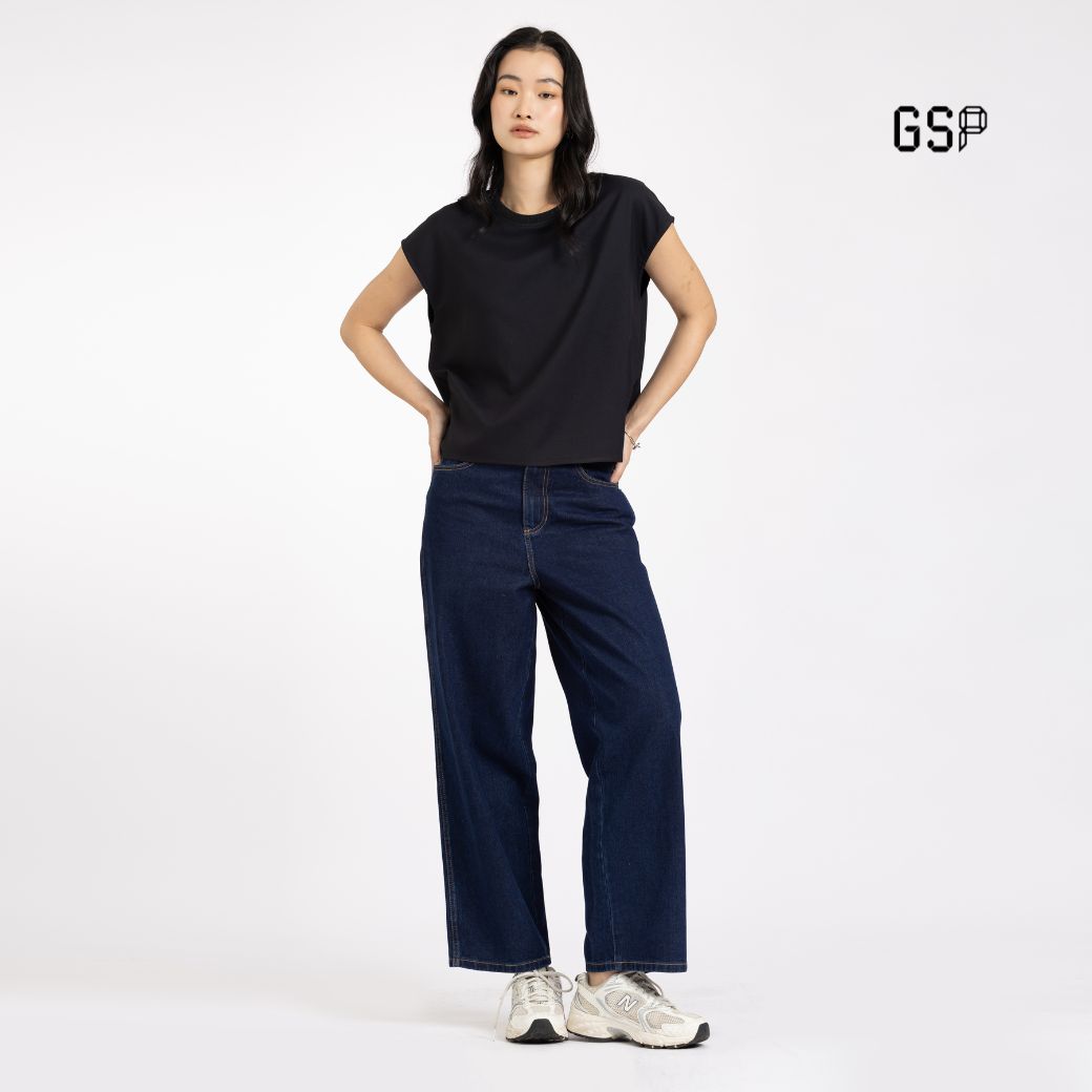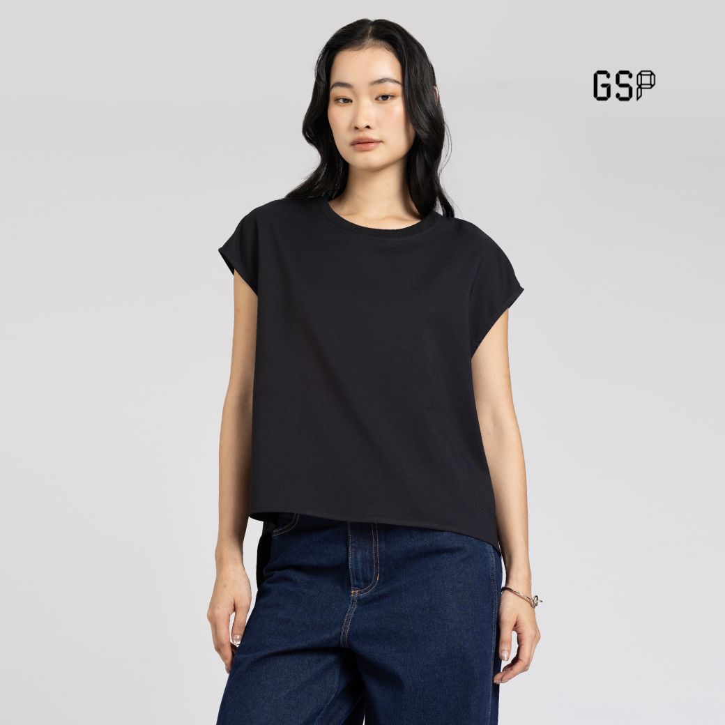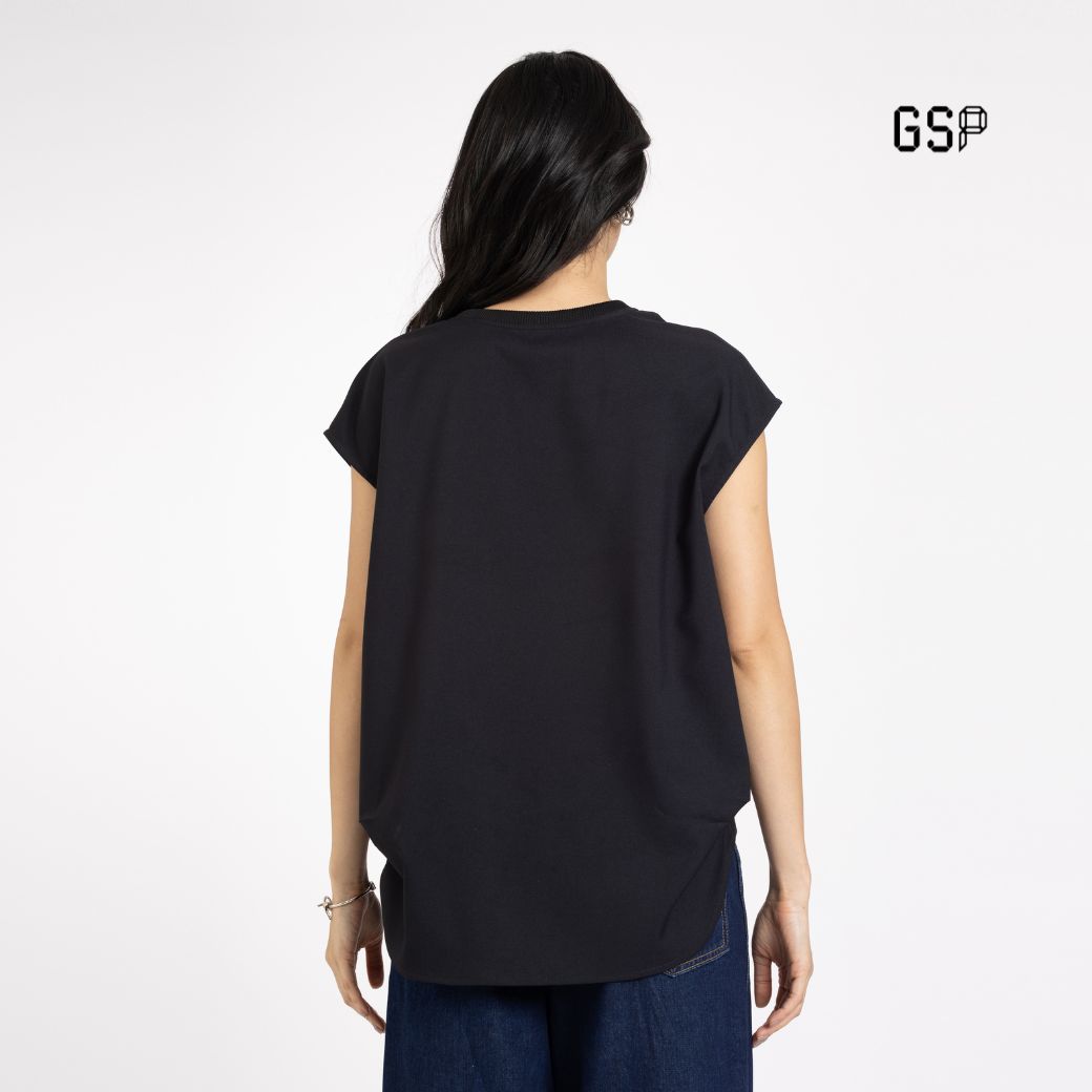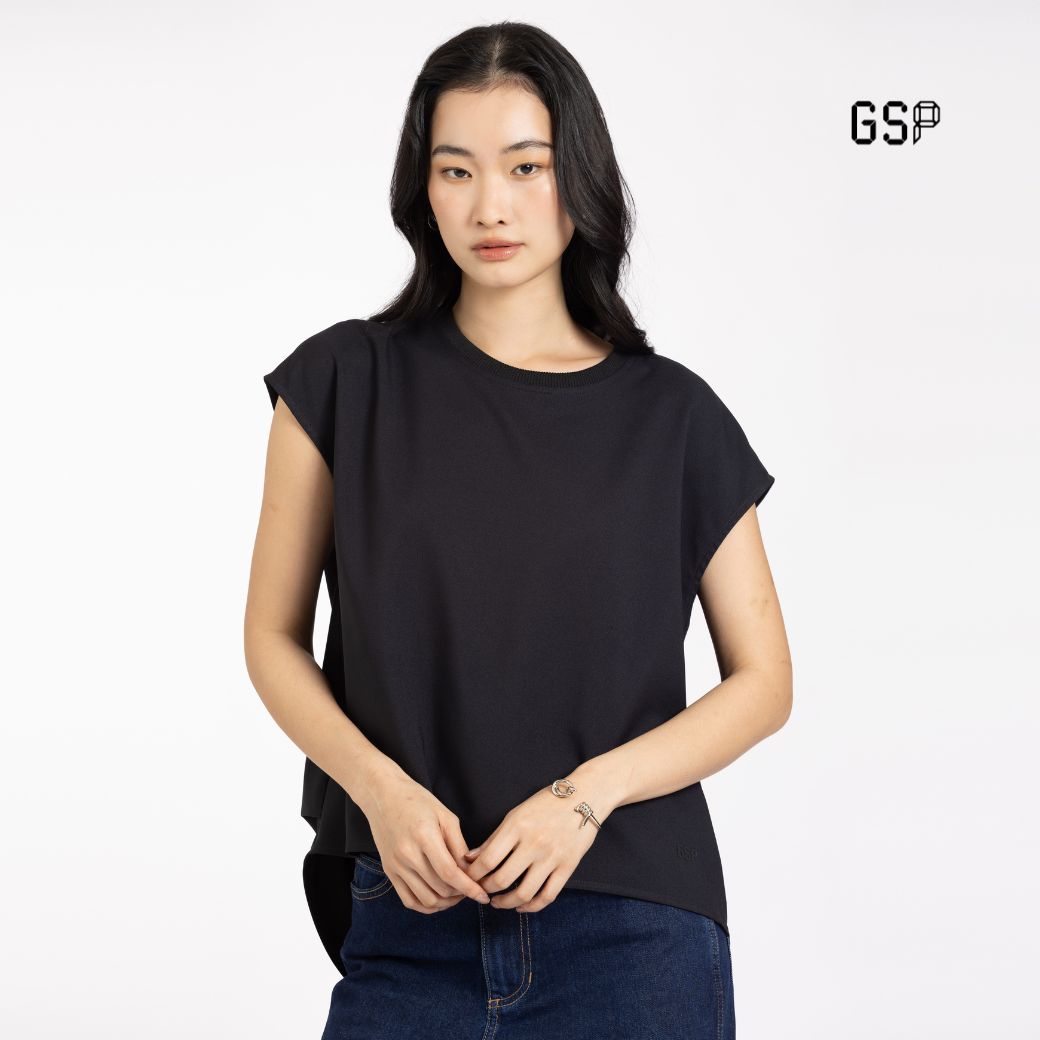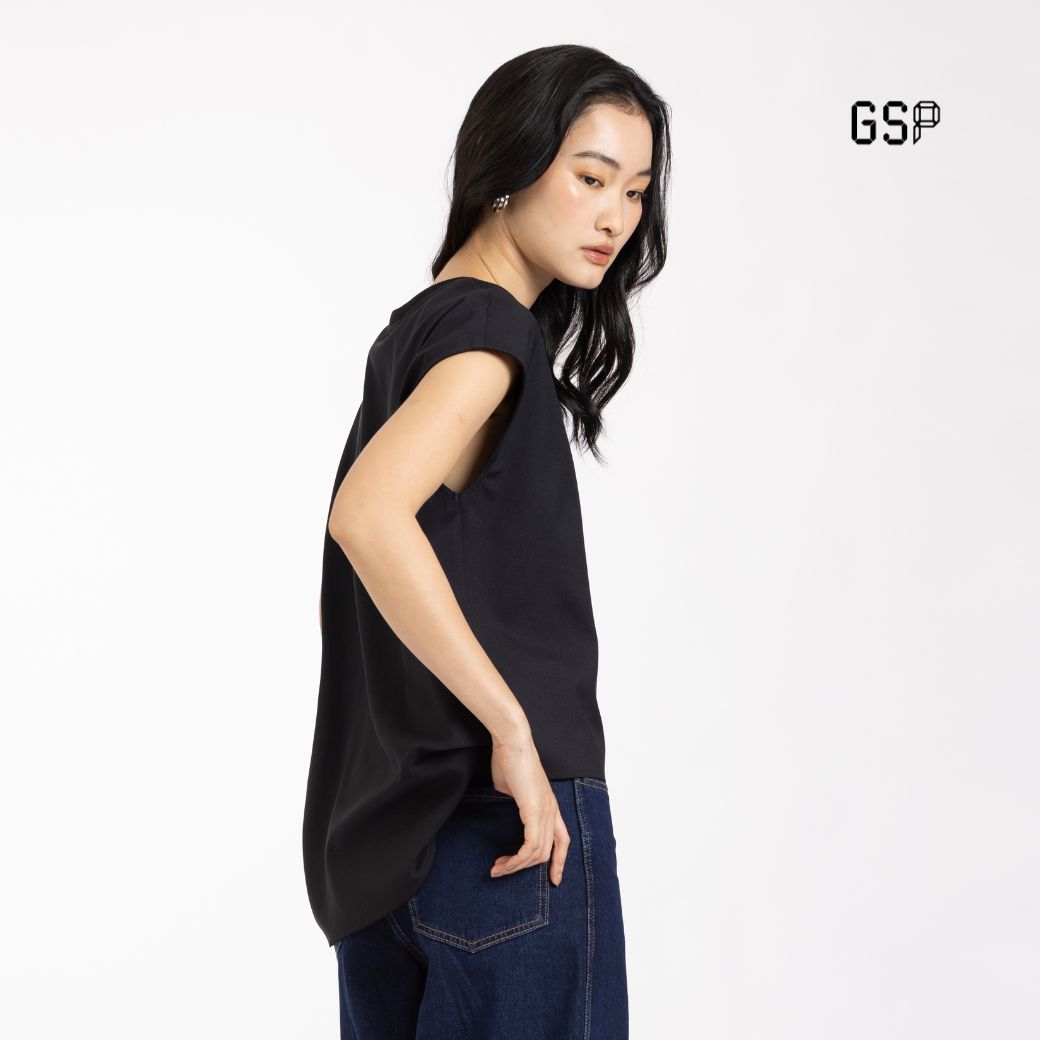 GSP Flexi twill – sleeveless blouse Black | เสื้อผู้หญิง เฟล็กซี่ ทวิลล์ แขนสั้้น สีดำ P9YHBL