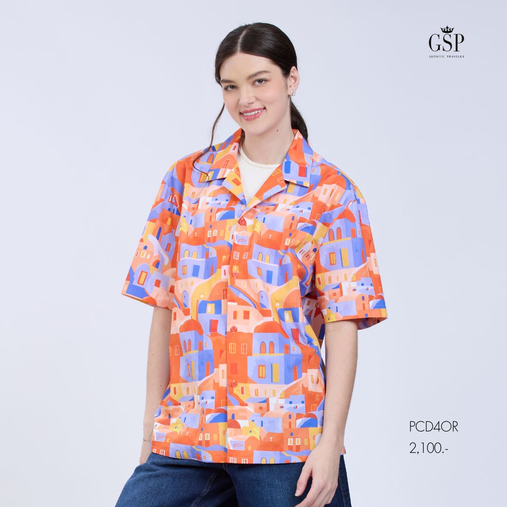 GSP Unisex shirt Sunset | เสื้อเชิ้ต แขนสั้้น สีส้ม PCD4OR