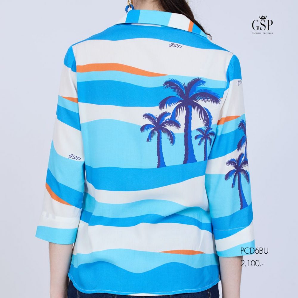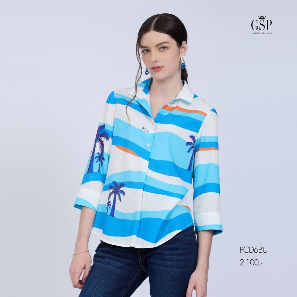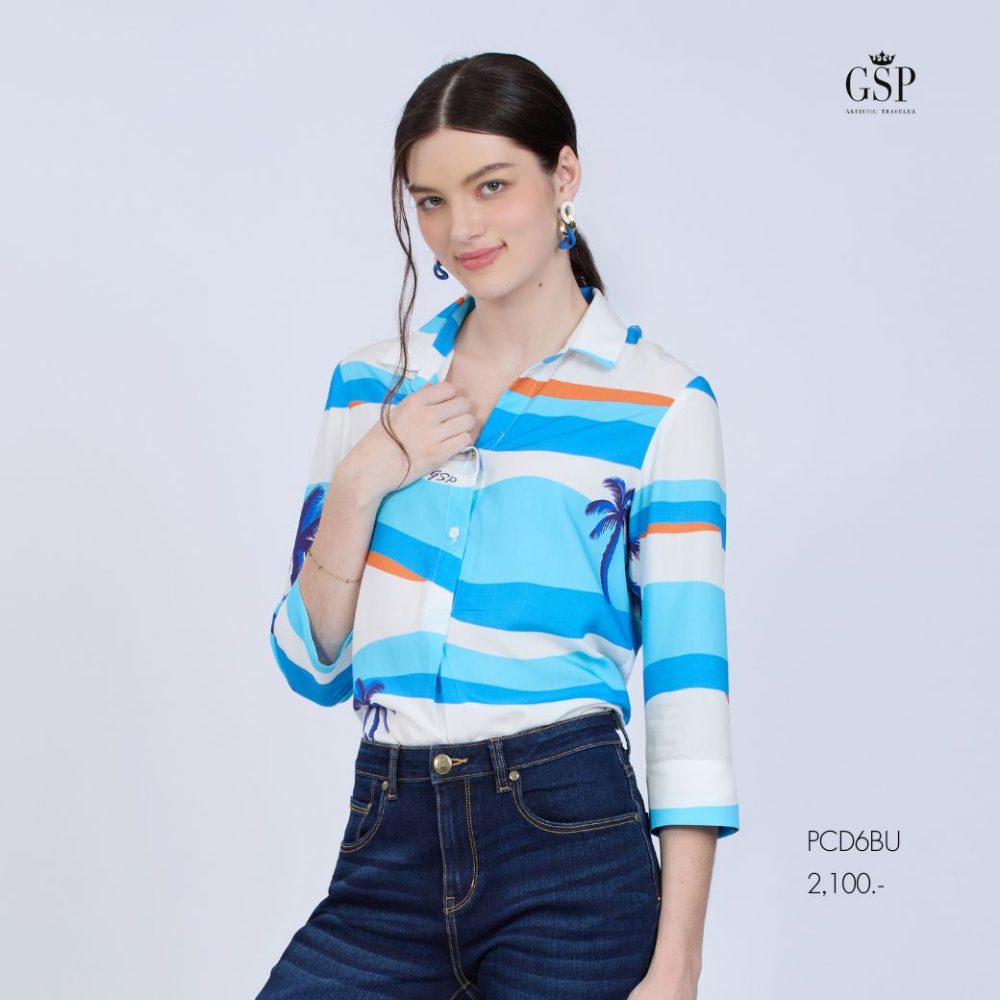 GSP Wave Woman’s shirt longsleeve Blue | เสื้อเชิ้ตผู้หญิง เวฟ แขนสามส่วน สีน้ำเงิน PCD6BU