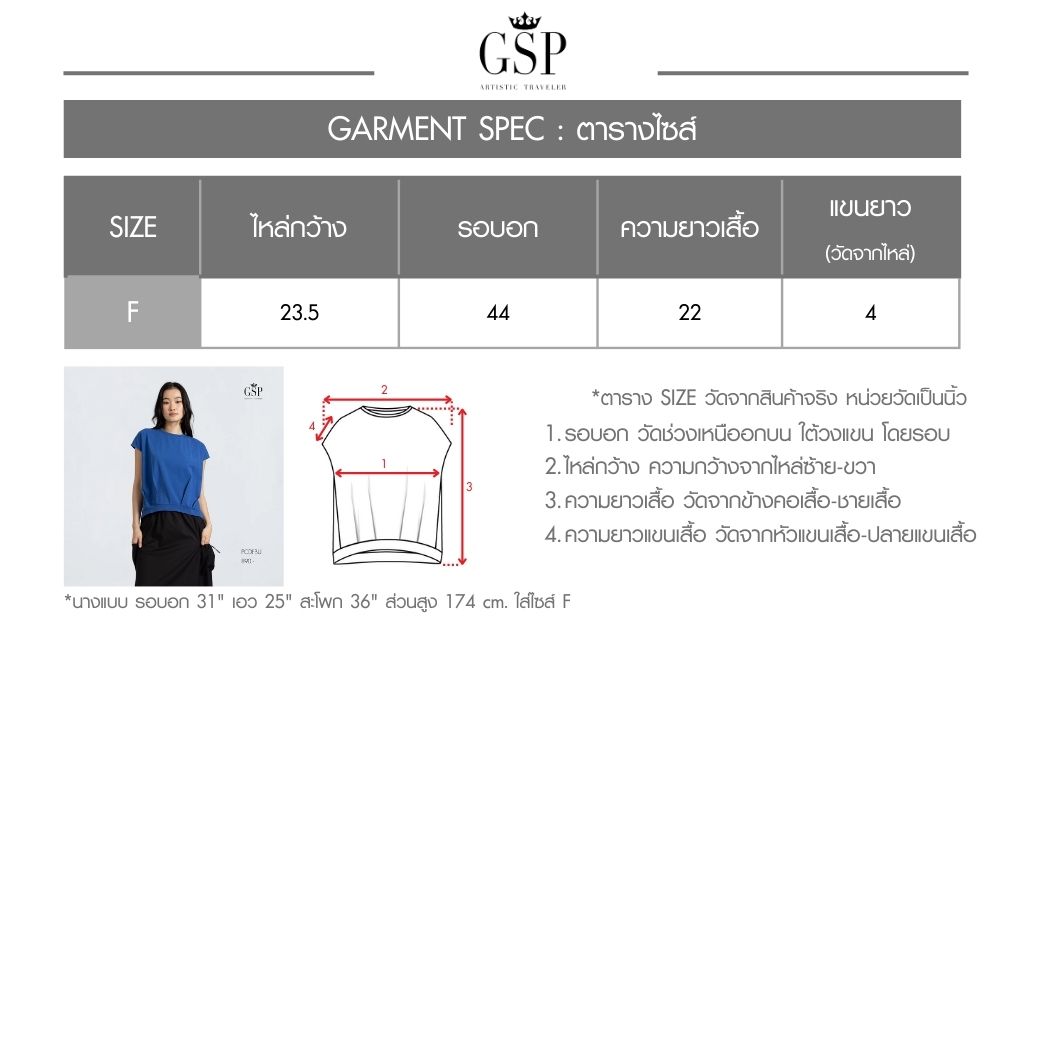 GSP Woman’s blouse Balloon Tee Short sleeve Blue | เสื้อยืด บอลลูน ที แขนสั้น สีน้ำเงิน PCDFBU