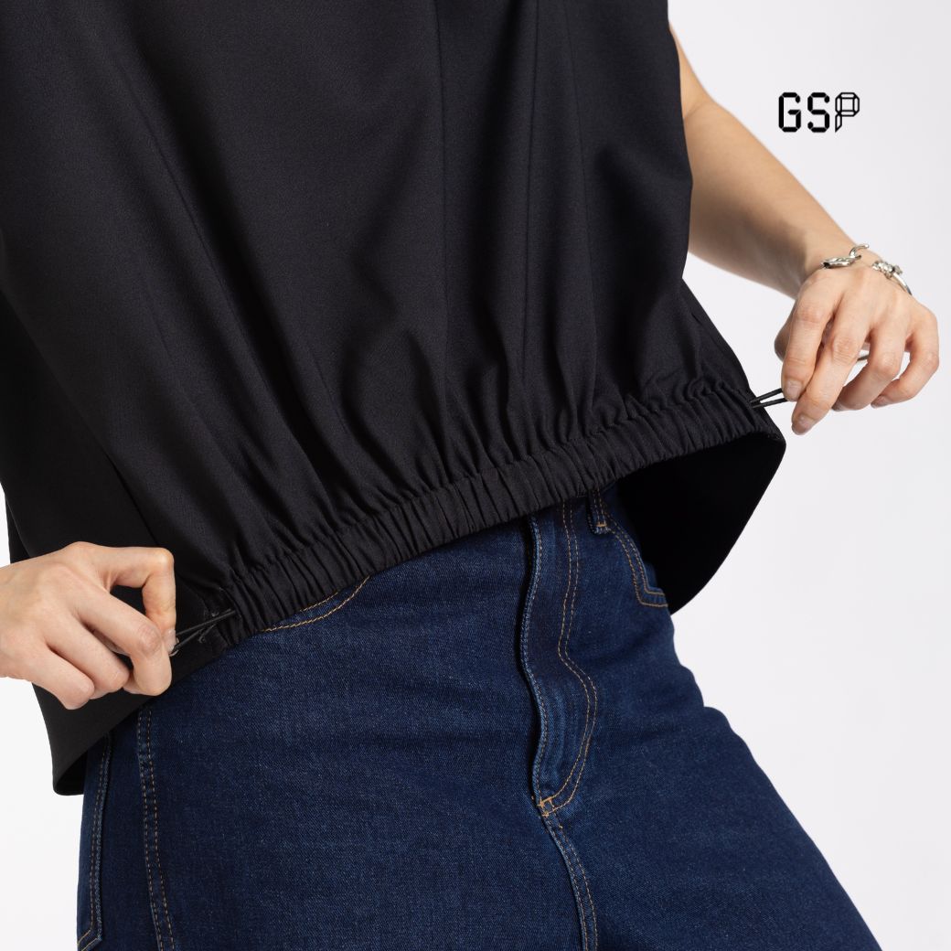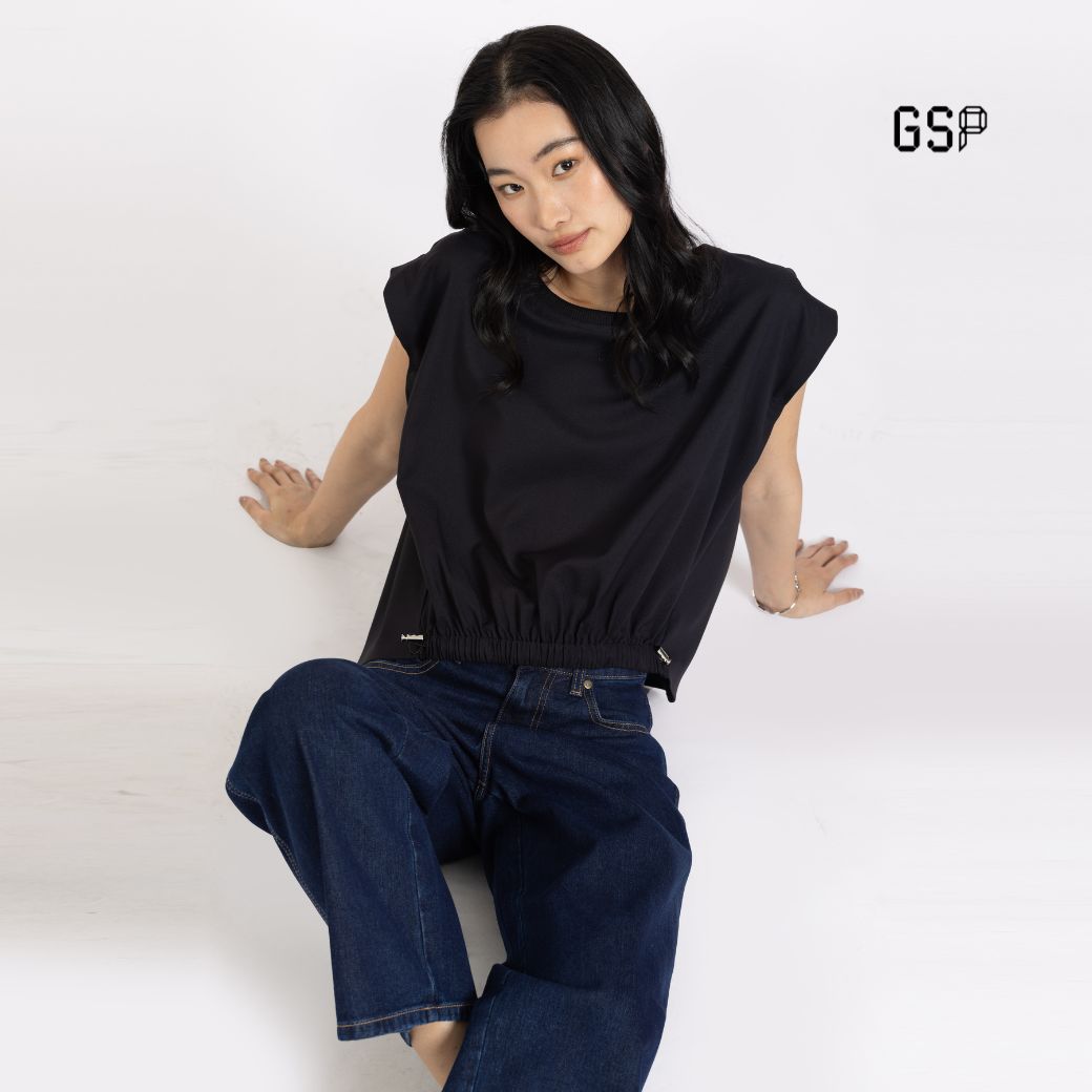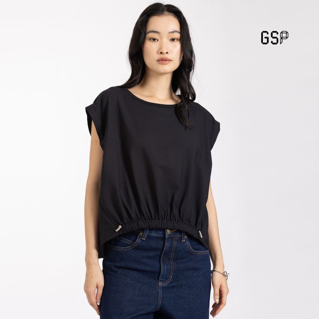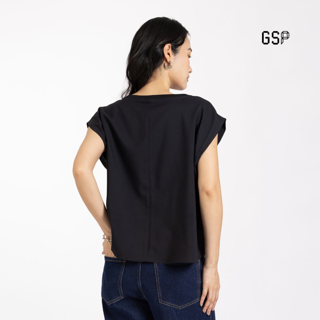 GSP Woman’s Blouse Flexi twill stretch crop blouse Black | เสื้อผู้หญิง เฟล็กซี่ ทวิลล์ สเตรท แขนสั้น สีดำ P9YIBL