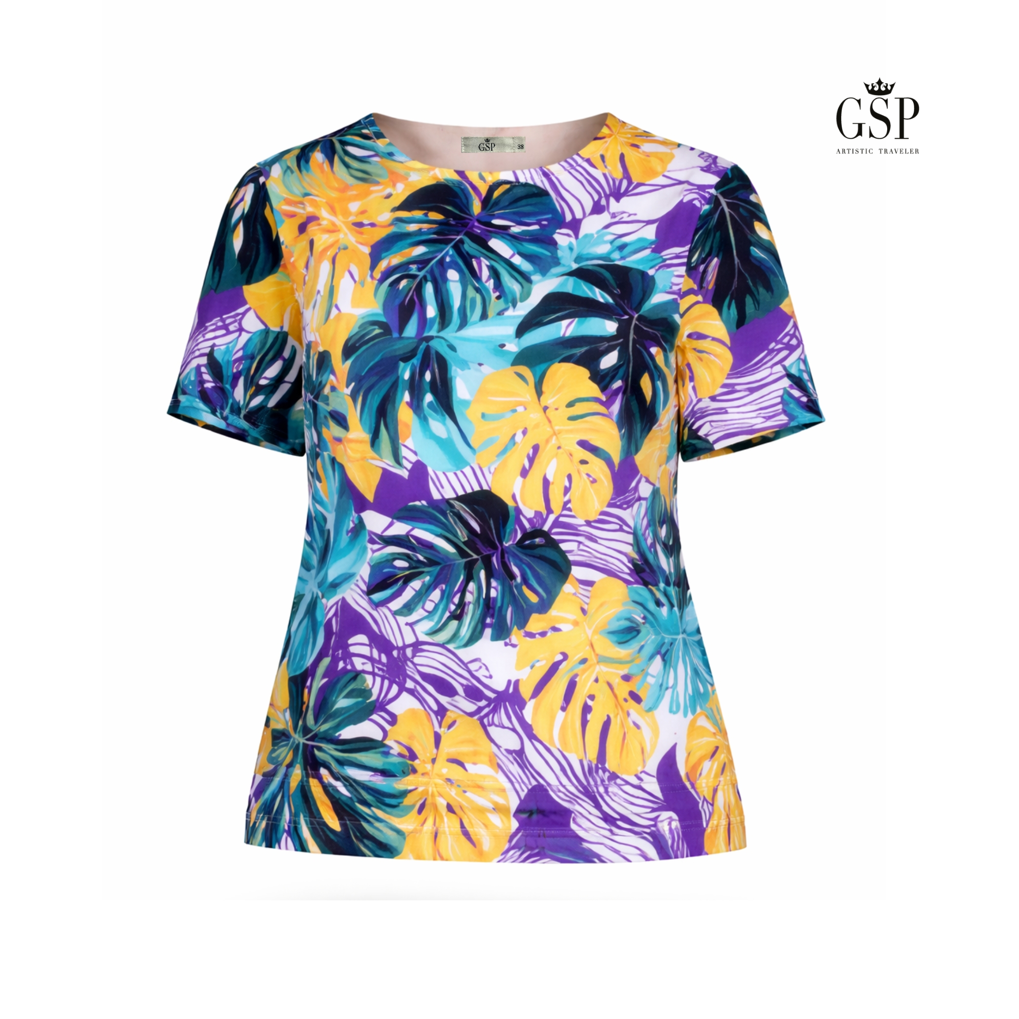 GSP Woman’s Blouse Tropical monstera | เสื้อผู้หญิง แขนสั้น สีน้ำเงิน PCDSNV