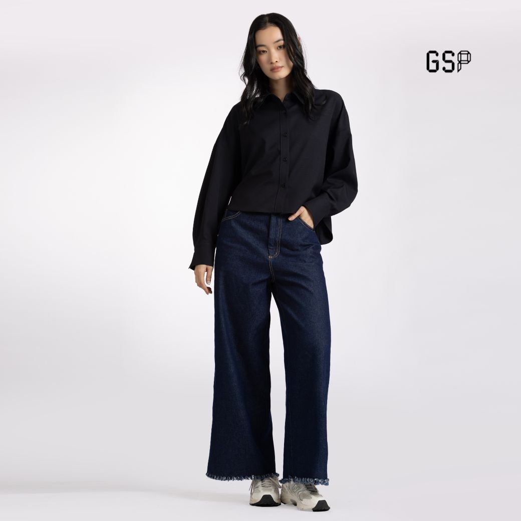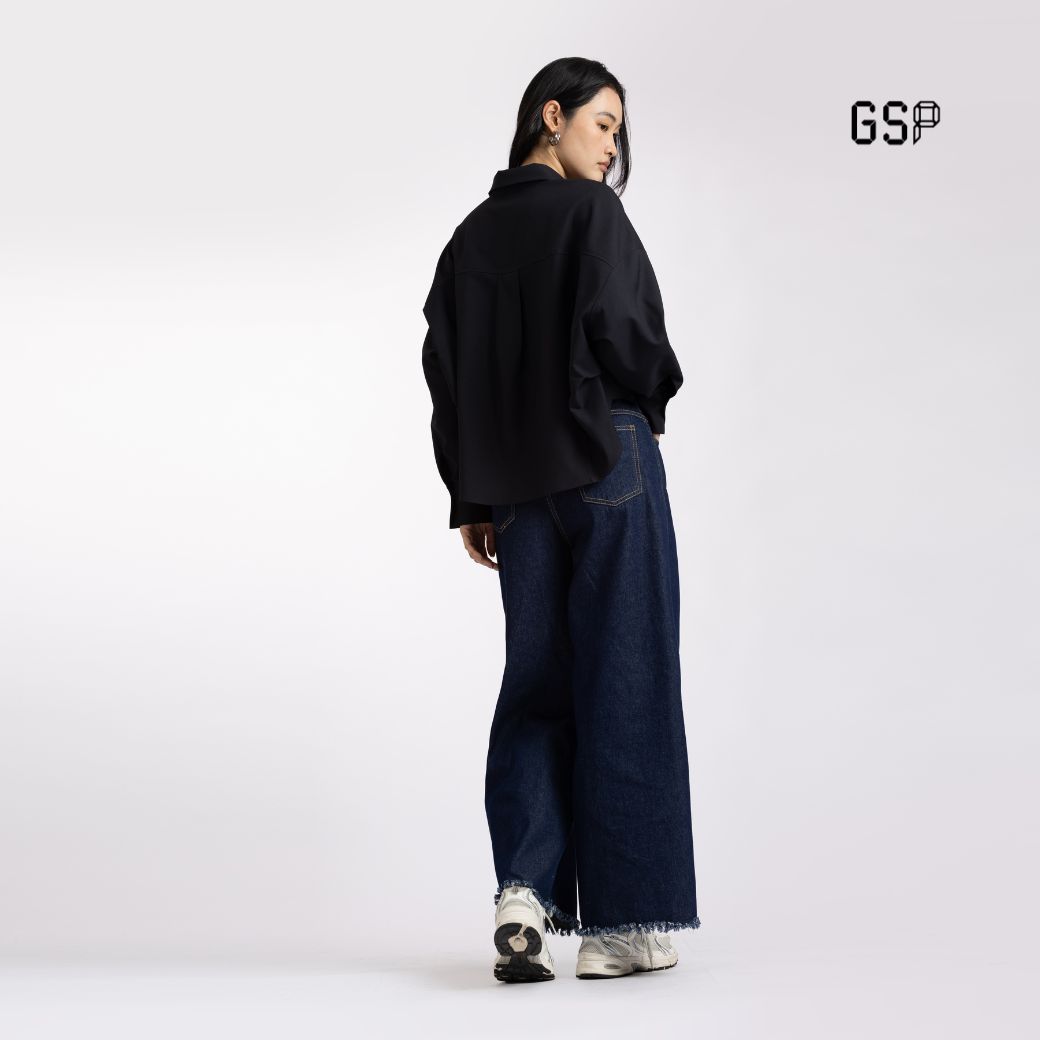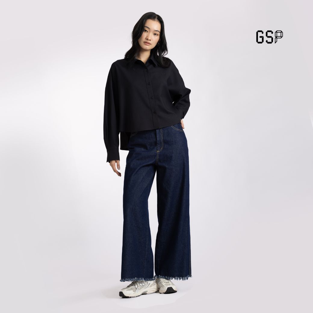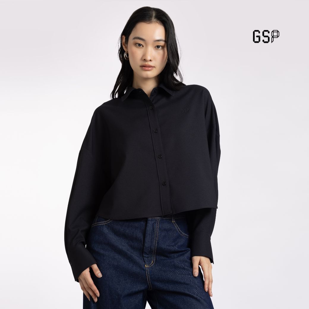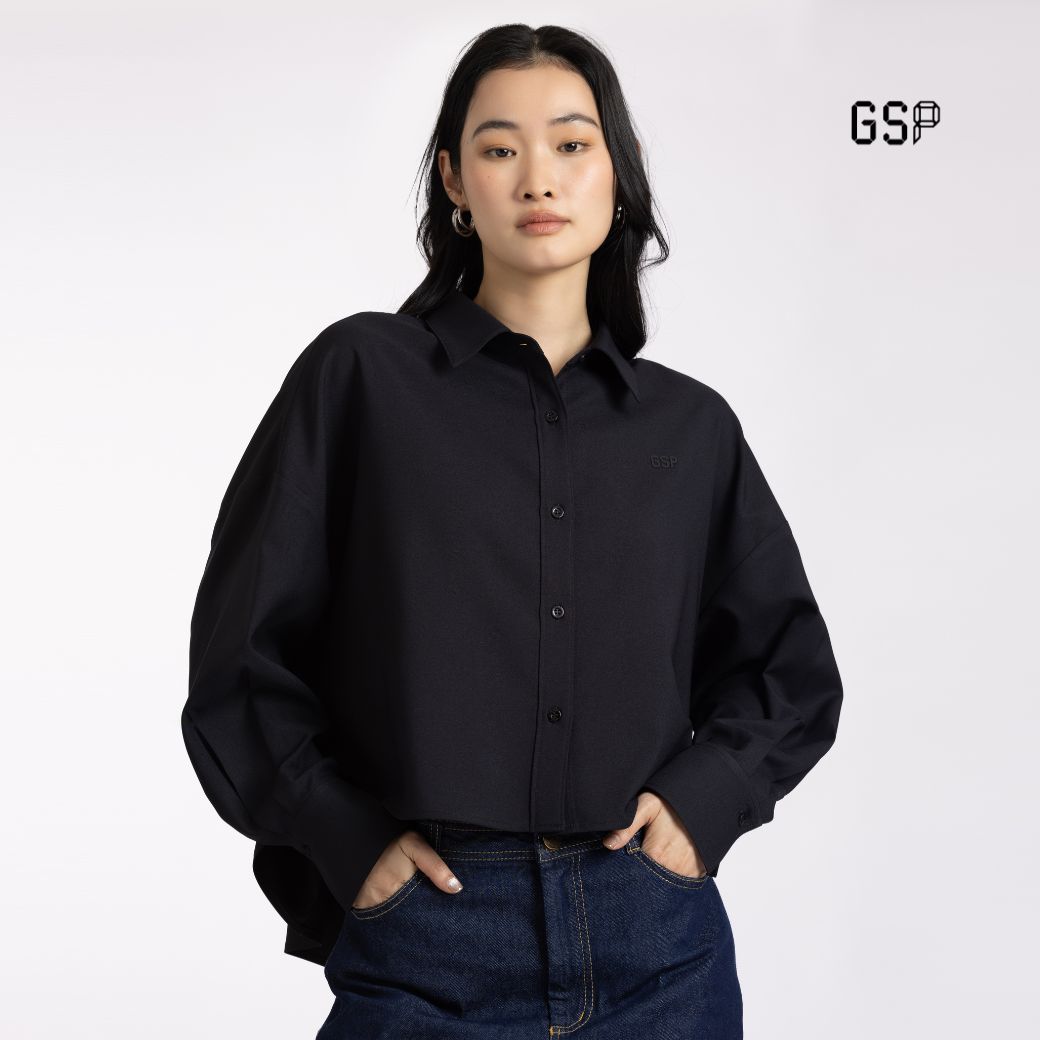 GSP Woman’s shirt Flexi twill stretch Crop shirt Black | เสื้อเชิ้ตผู้หญิง เฟล็กซี่ ทวิลล์ สเตรท ปกเชิ้ต แขนยาว สีดำ P9YJBL