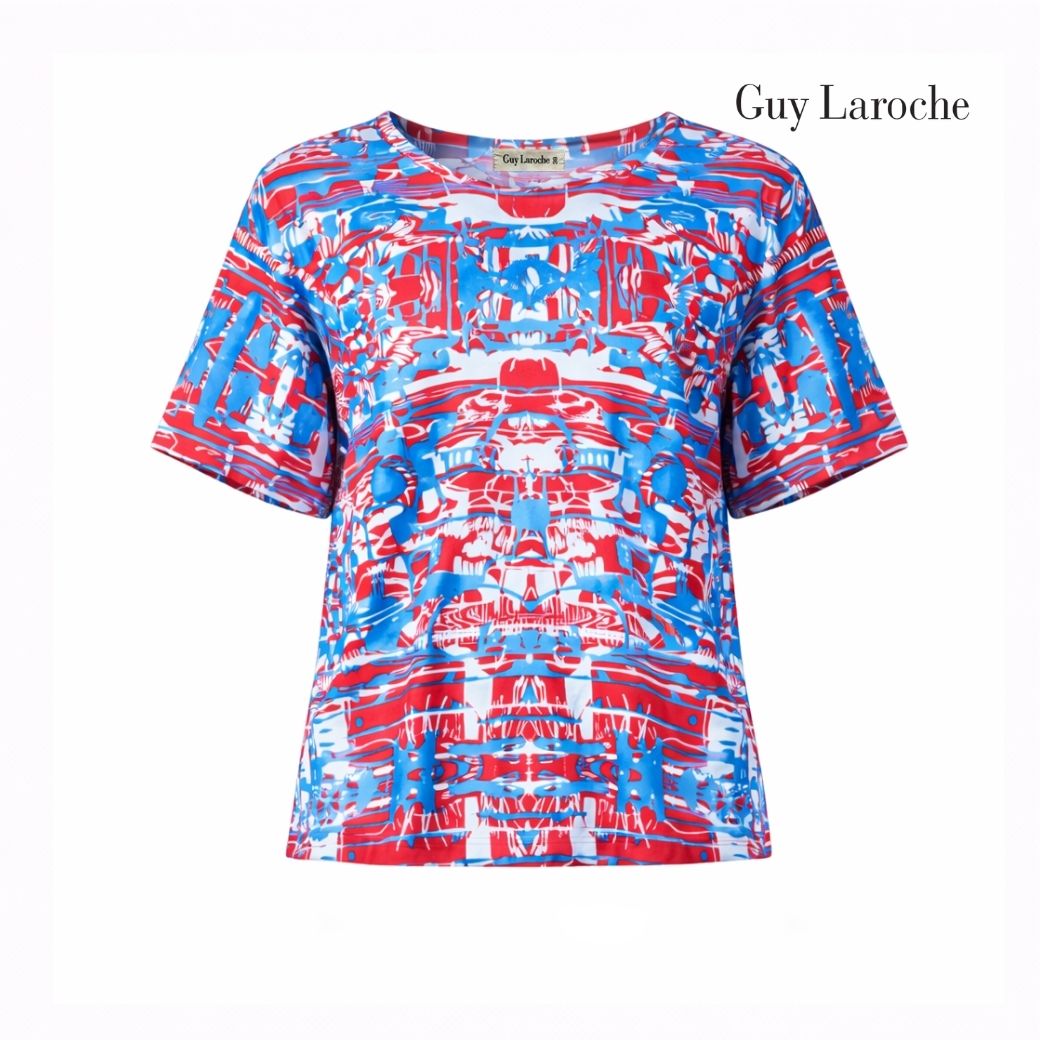 เสื้อผู้หญิง Guy Laroche Blouse เสื้อเบลาส์ผ้าคอตตอนแขนสสั้น ลายพิมพ์ Fast&Furious GZ16DB
