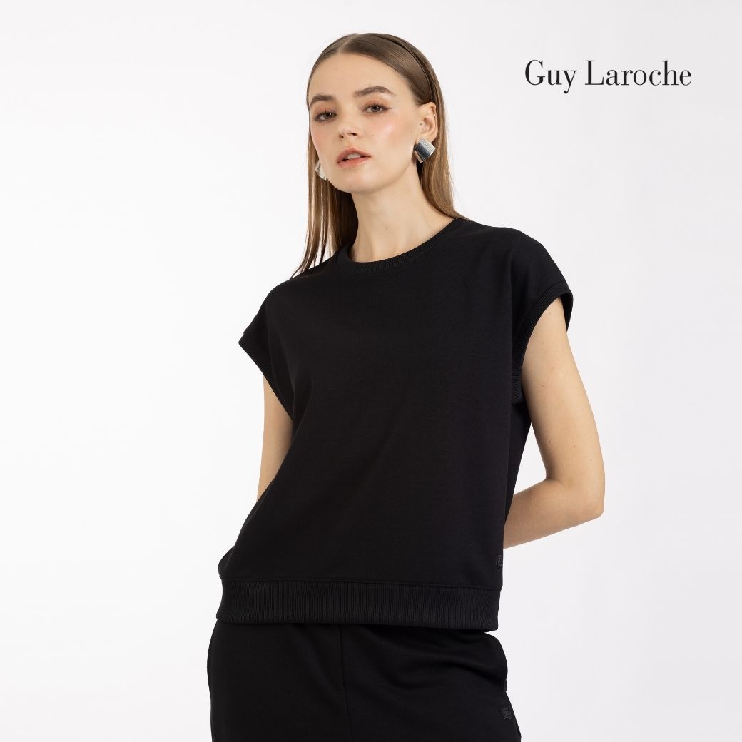 Guy Laroche Jersey Crop top | เสื้อยืดแขนเลย สีดำ G9YYBL
