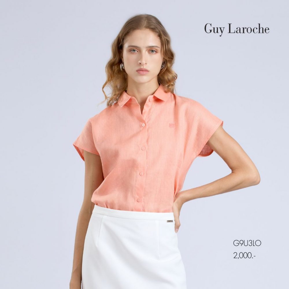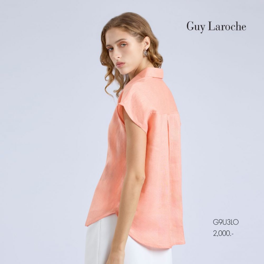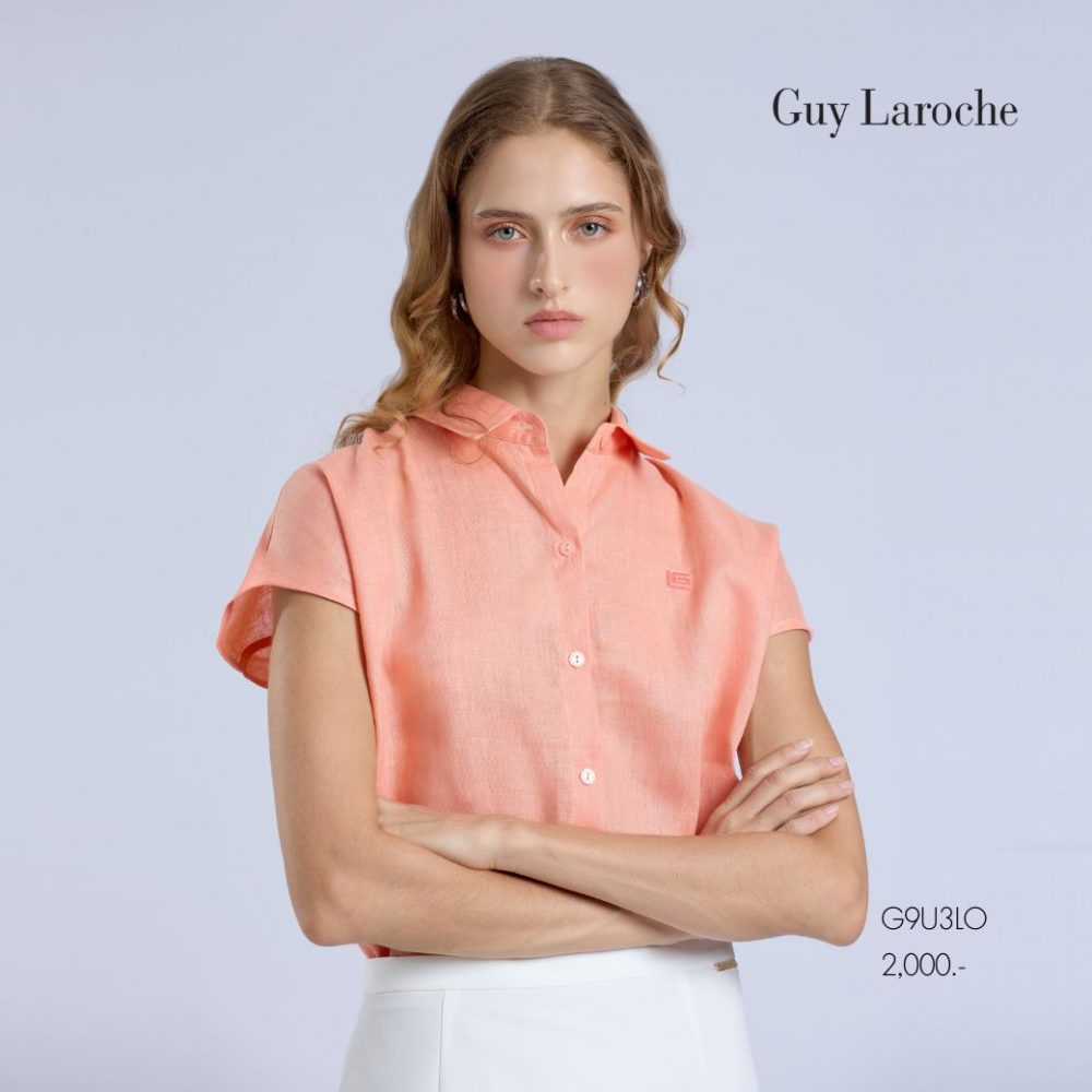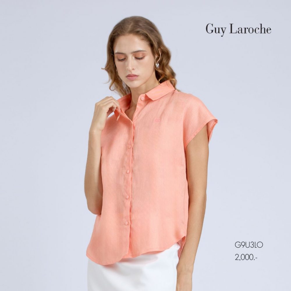 เสื้อผู้หญิง Guy Laroche รุ่น Light Linen Coral สีส้ม ผลิตจากผ้าลินินแท้ 100% ดีไซน์แขนล้ำ ทรงหลวม สวมใส่สบายและช่วยระบายอากาศได้ดี เหมาะสำหรับลุคทำงานที่สุภาพเรียบหรู หรือสไตล์ลำลองที่ดูคลาสสิกลงตัว เติมเต็มความมั่นใจและความสง่างามในทุกโอกาส