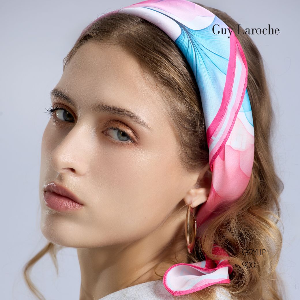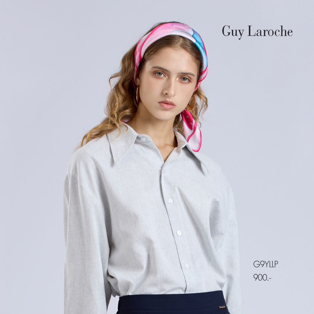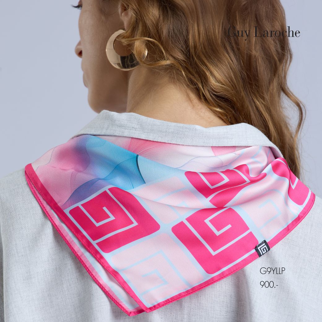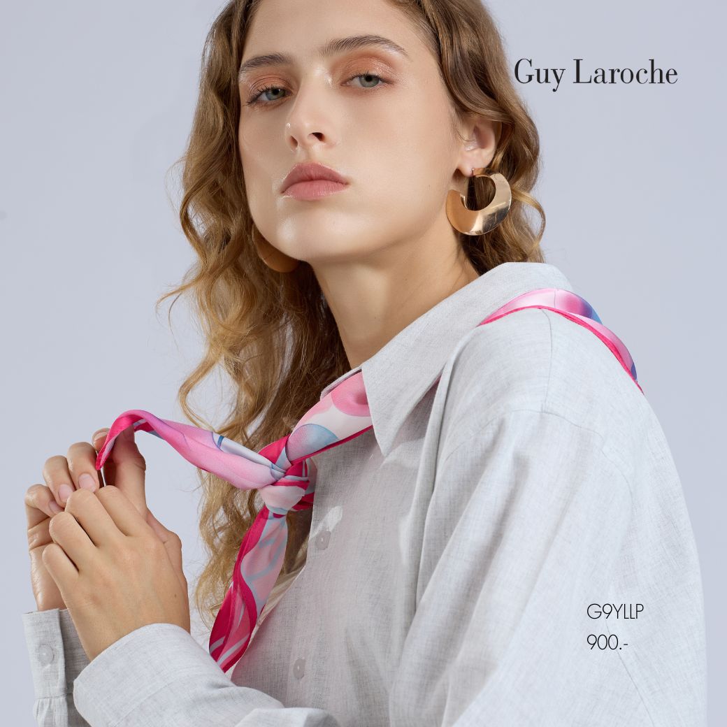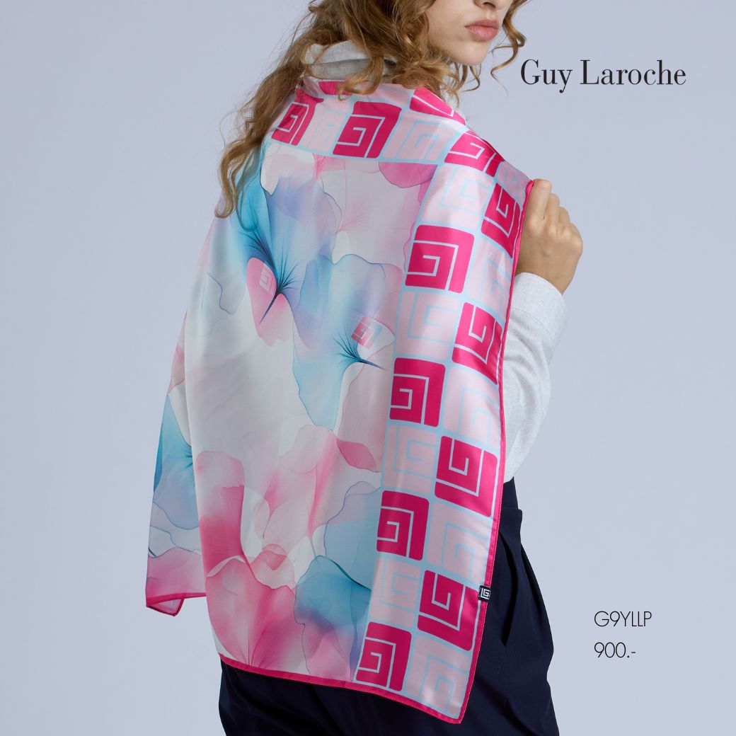 ผ้าพันคอ Guy Laroche Dream Gingko ลายพิมพ์ใบแปะก๊วย สัญลักษณ์แห่งความแข็งแรงและความยืนยาว ผลิตจากผ้าโพลีเอสเตอร์ซาติน เนื้อเงางาม ขนาด 70×70 ซม. ดีไซน์จัตุรัสอเนกประสงค์ ใช้พันคอ โพกศีรษะ คลุมไหล่ หรือประดับกระเป๋า เพิ่มความหรูหราให้ทุกลุคในวันสบาย ๆ