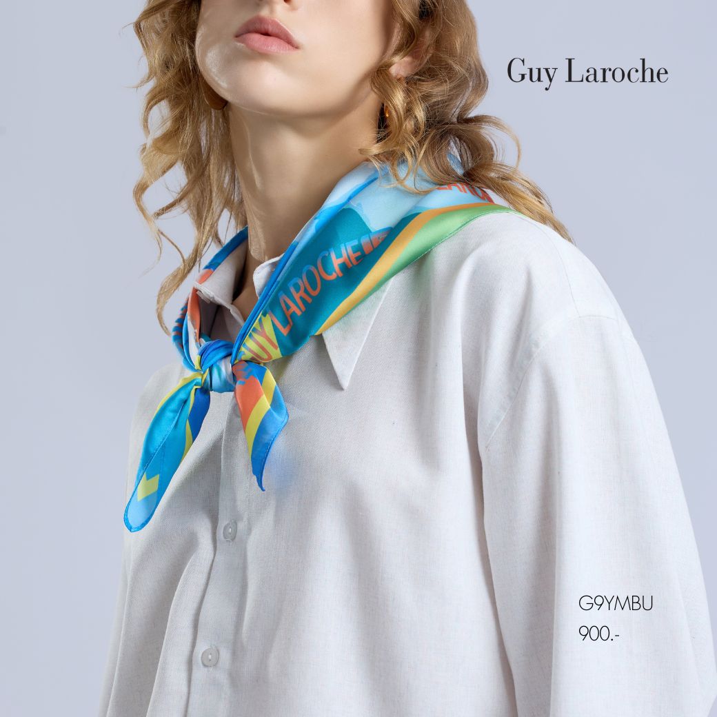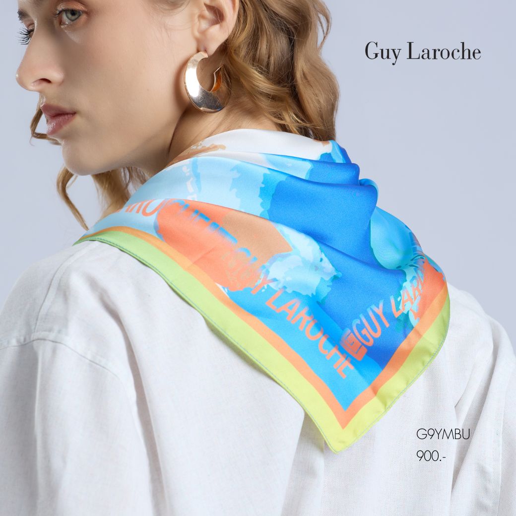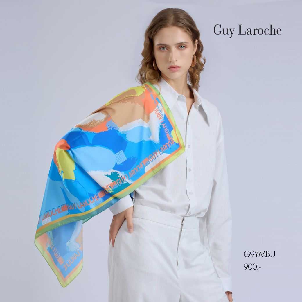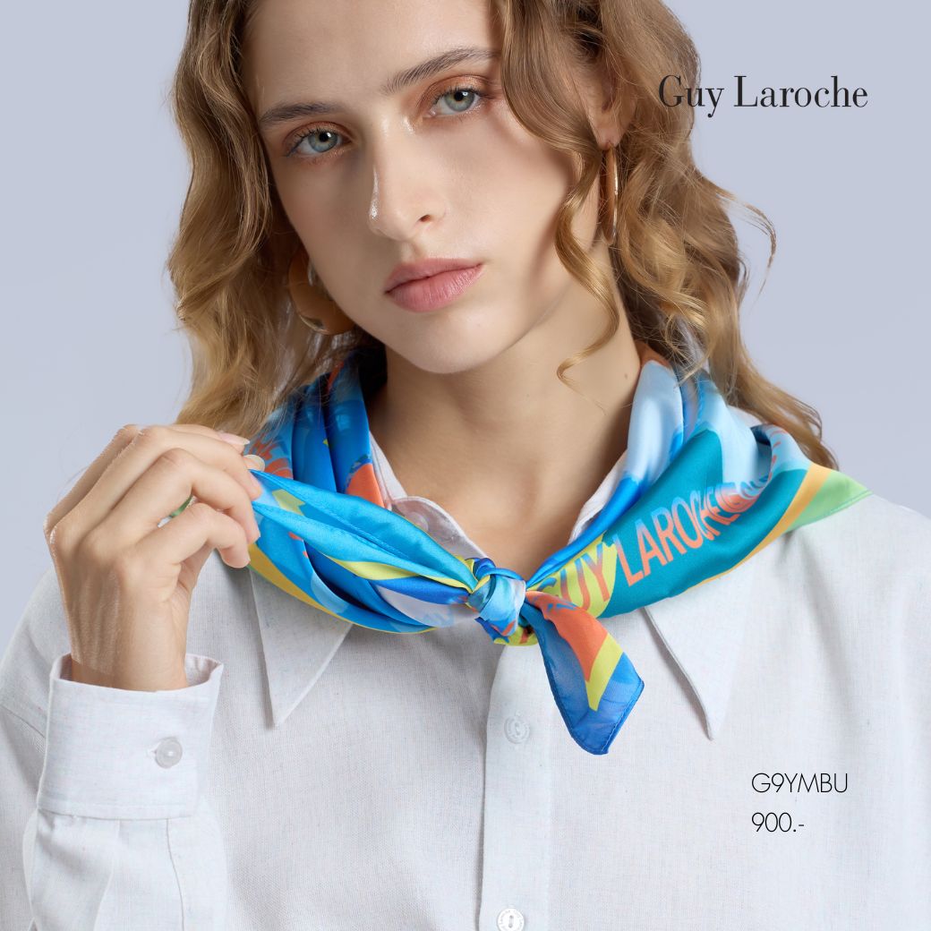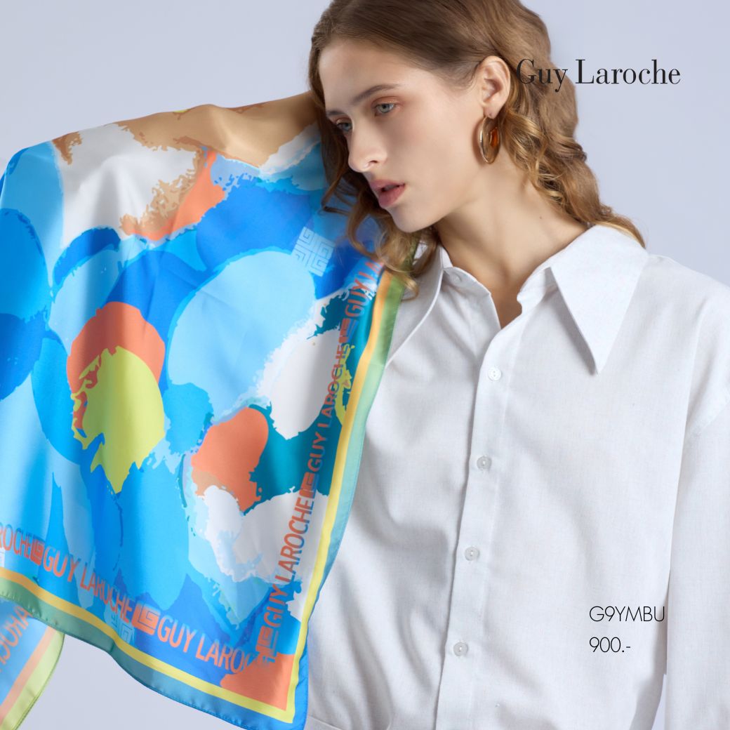 ผ้าพันคอ Guy Laroche รุ่น Sky Scarf ผลิตจากผ้าโพลีเอสเตอร์ซาติน 100% เนื้อสัมผัสนุ่ม เรียบหรู เงางาม ขนาด 70×70 ซม. ลายพิมพ์โทนสีน้ำเงินให้ความรู้สึกสงบและทันสมัย ใช้พันคอ โพกศีรษะ คลุมไหล่ หรือประดับกระเป๋า เติมความหรูหราให้ลุคในทุกวัน