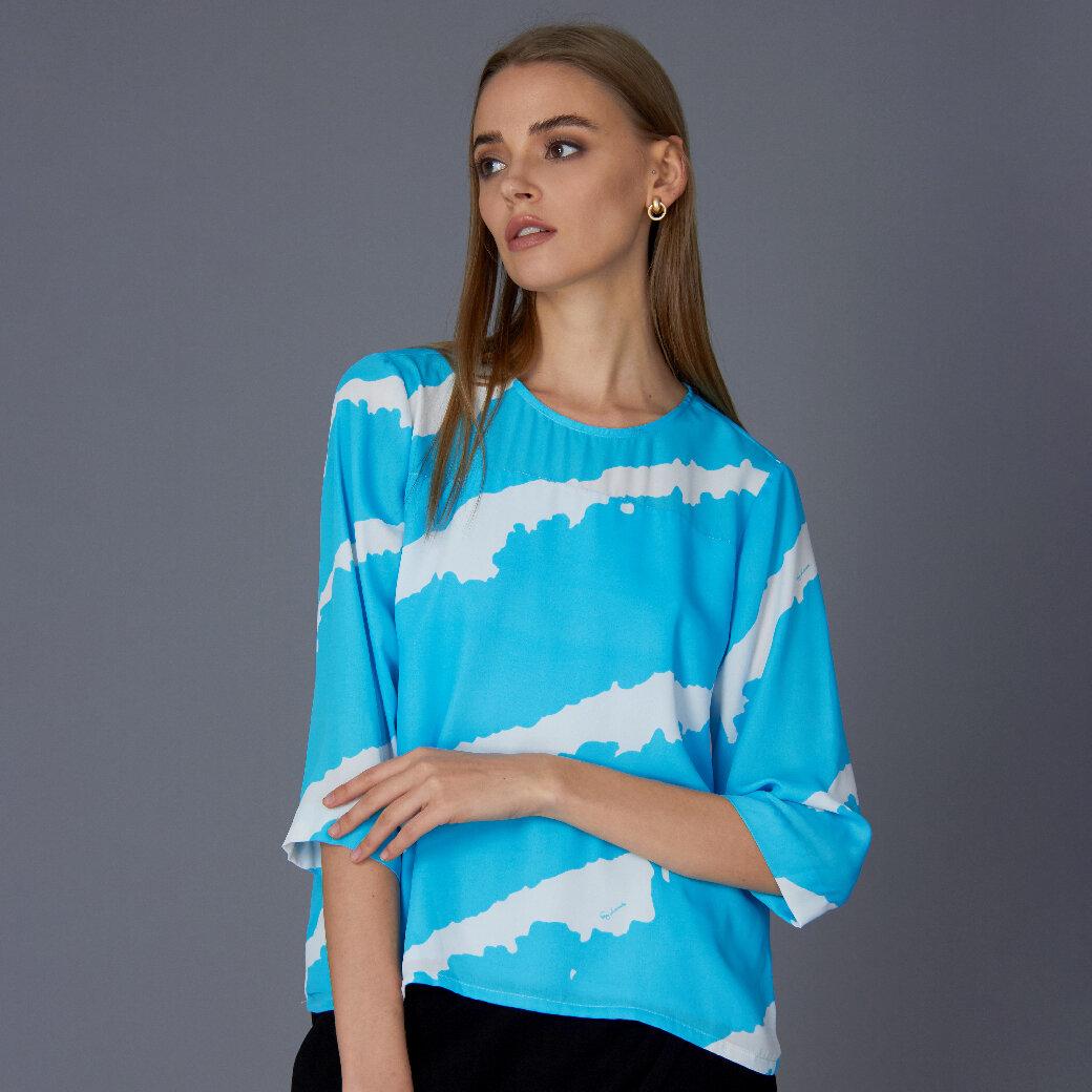 เสื้อเบลาส์ผู้หญิง พิมพ์ลายท้องฟ้า คอกลม ผ้าจอร์เจีย ลายพิมพ์ Zebra Collection สวย สดใส บางเบา ใส่สบาย ไม่ร้อน